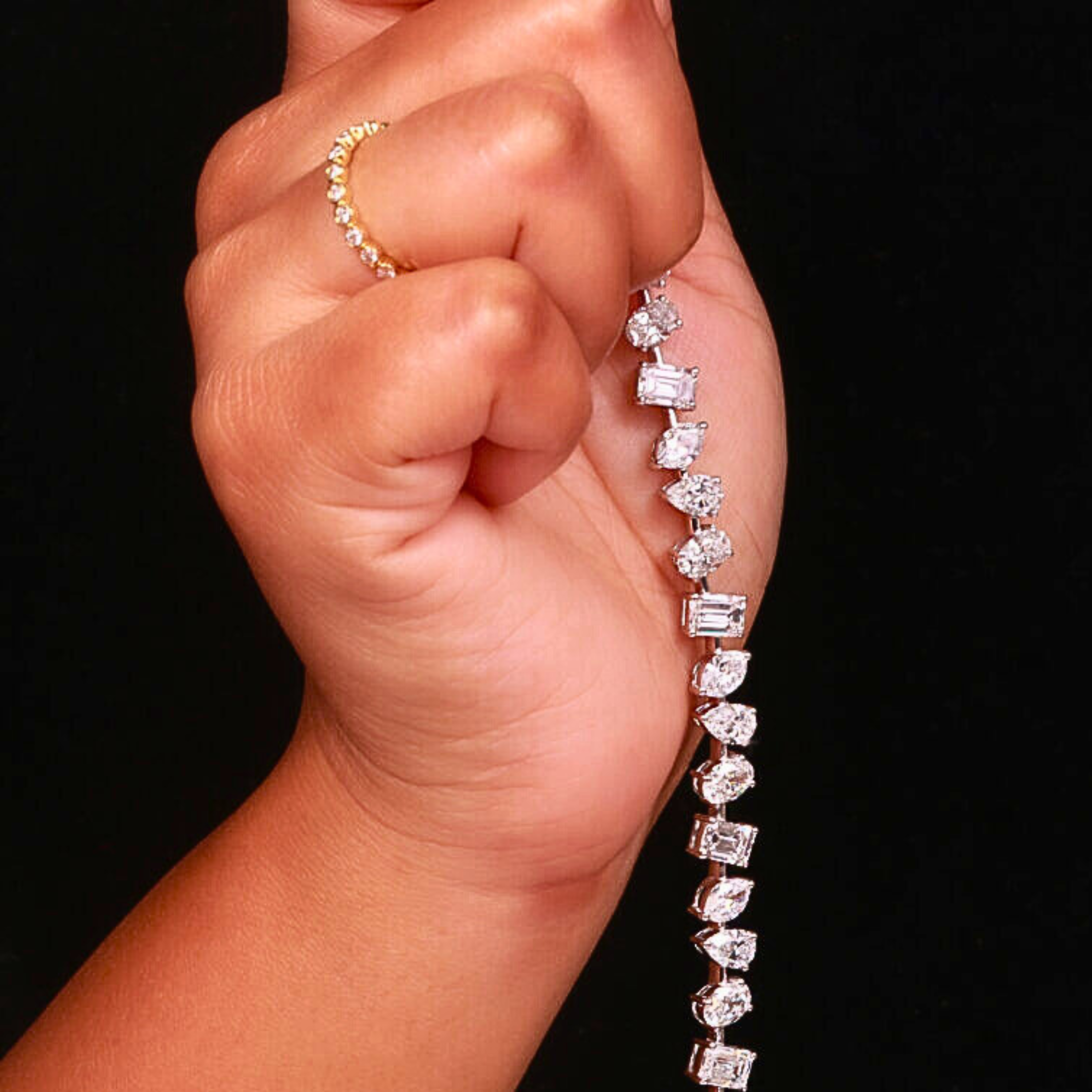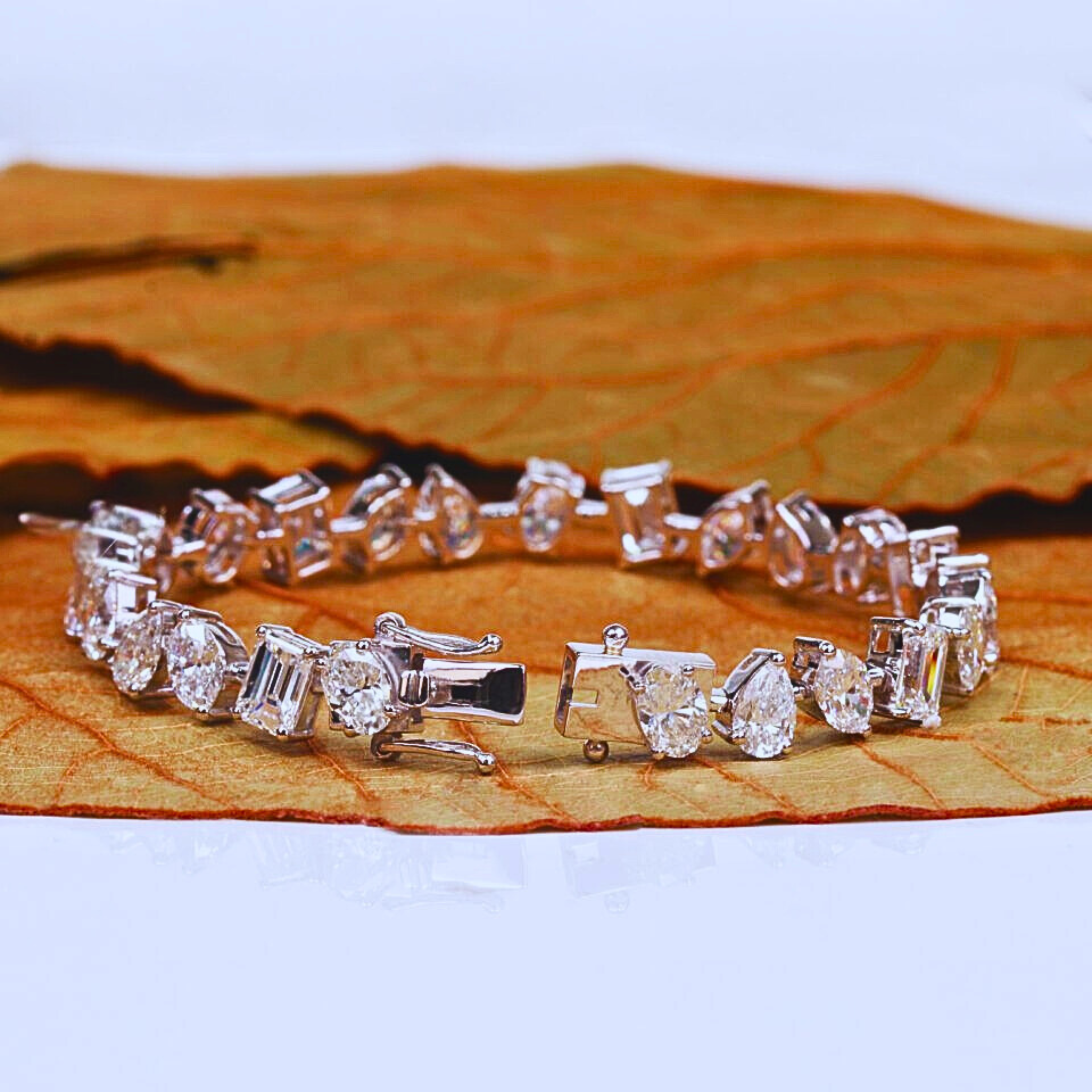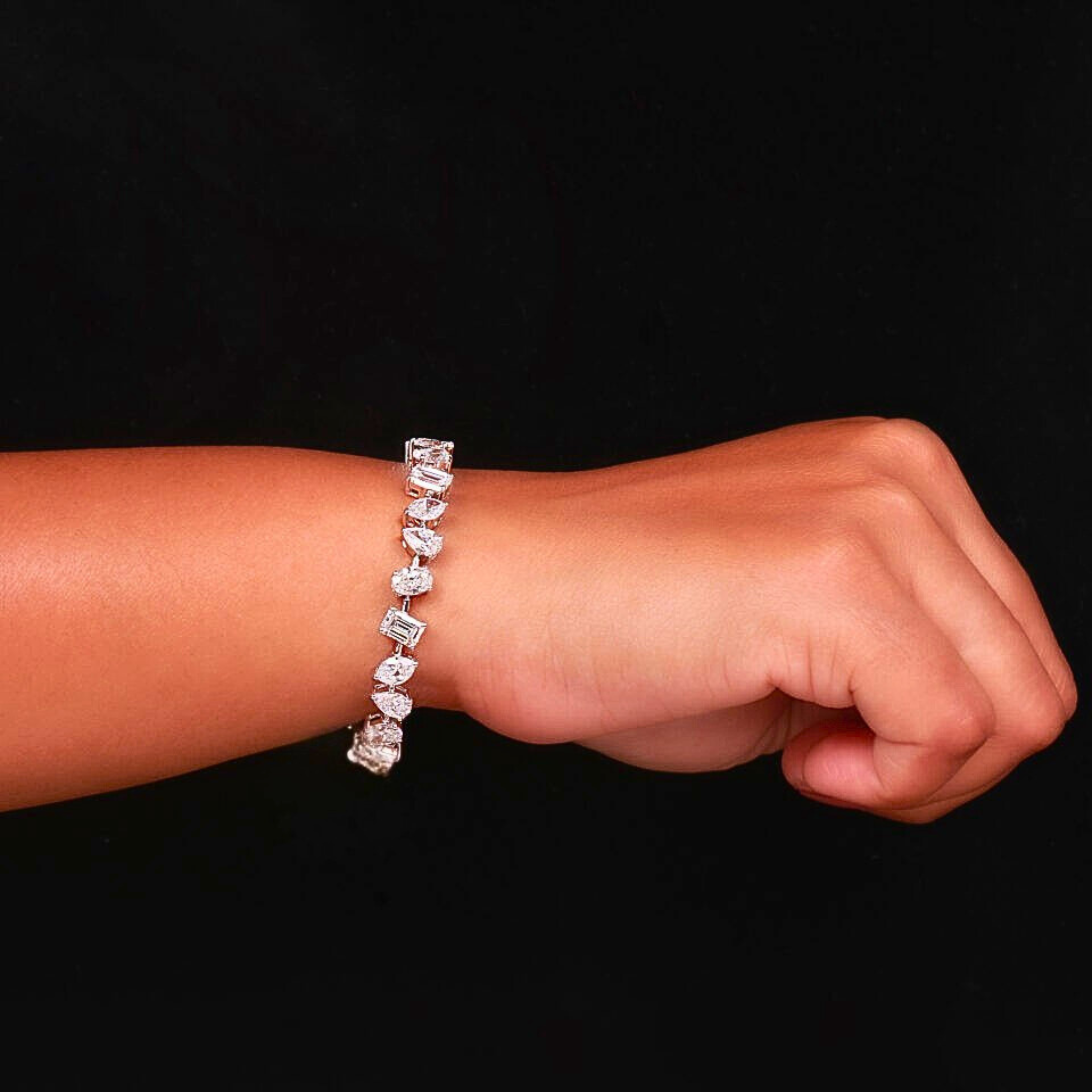 Multi-Shape Lab Grown Diamond Tennis Bracelet. A refined sequence of emerald, pear, oval and marquise cuts creates fluid brilliance and a distinctive look. Set with DE color, VVS2/VS1 clarity lab-grown diamonds totaling 15.00 carats in a 6.5-inch length, each stone finished with excellent cut, polish and symmetry. Offered in 10KT, 14KT or 18KT solid gold and 950 platinum, in white, yellow or rose tones, hallmarked and supplied with a jewelry certificate. Sizes and orders available globally.