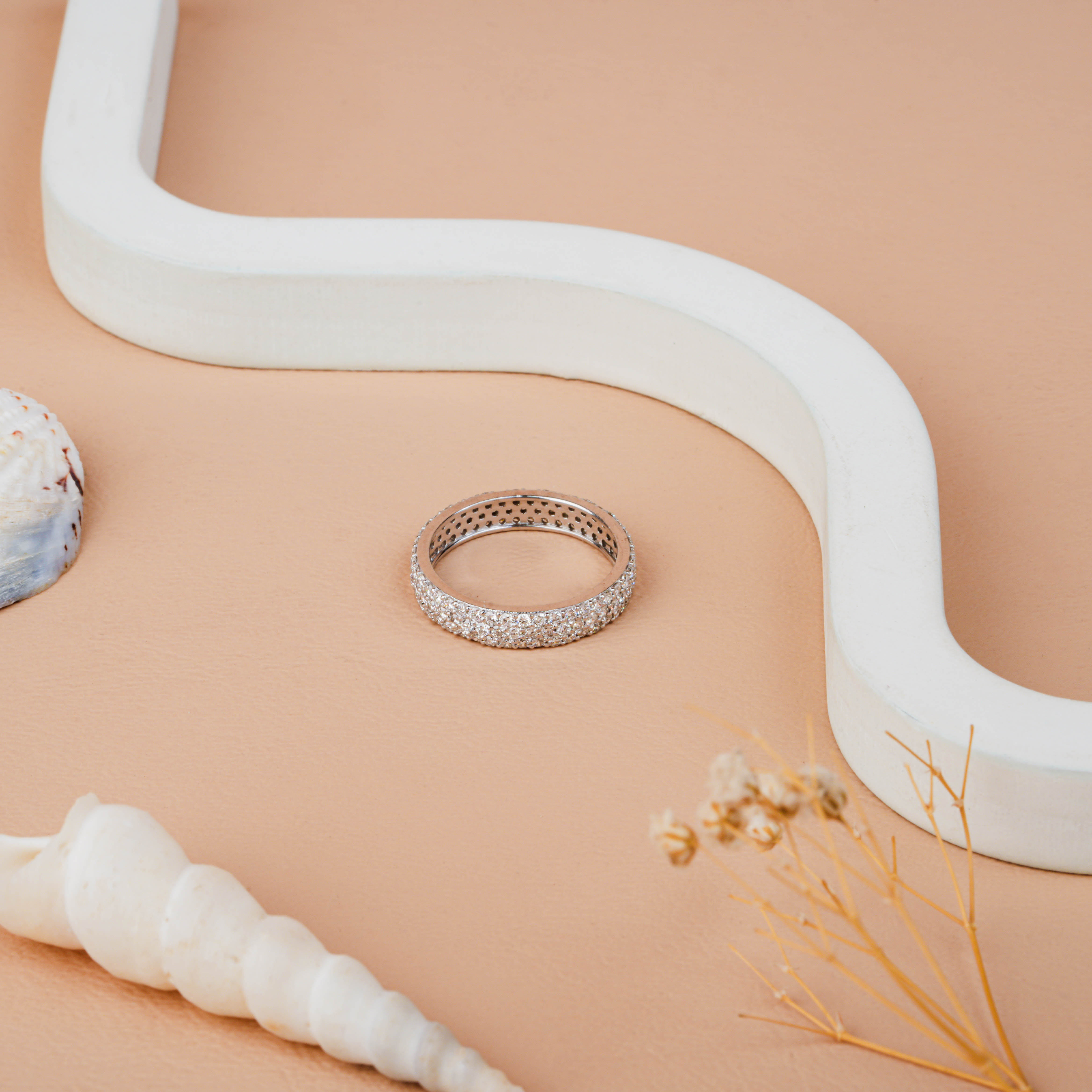 Experience nonstop sparkle with our Three-Row Micro Pavé Lab Diamond Eternity Band Ring. Three rows of finely set lab-grown diamonds create a continuous ribbon of brilliance, symbolizing love that shines from every angle. Expertly crafted in 14K or 18K White, Yellow, or Rose Gold, as well as Platinum, this radiant eternity band is perfect for weddings, anniversaries, stacking, or gifting her a timeless statement of devotion.