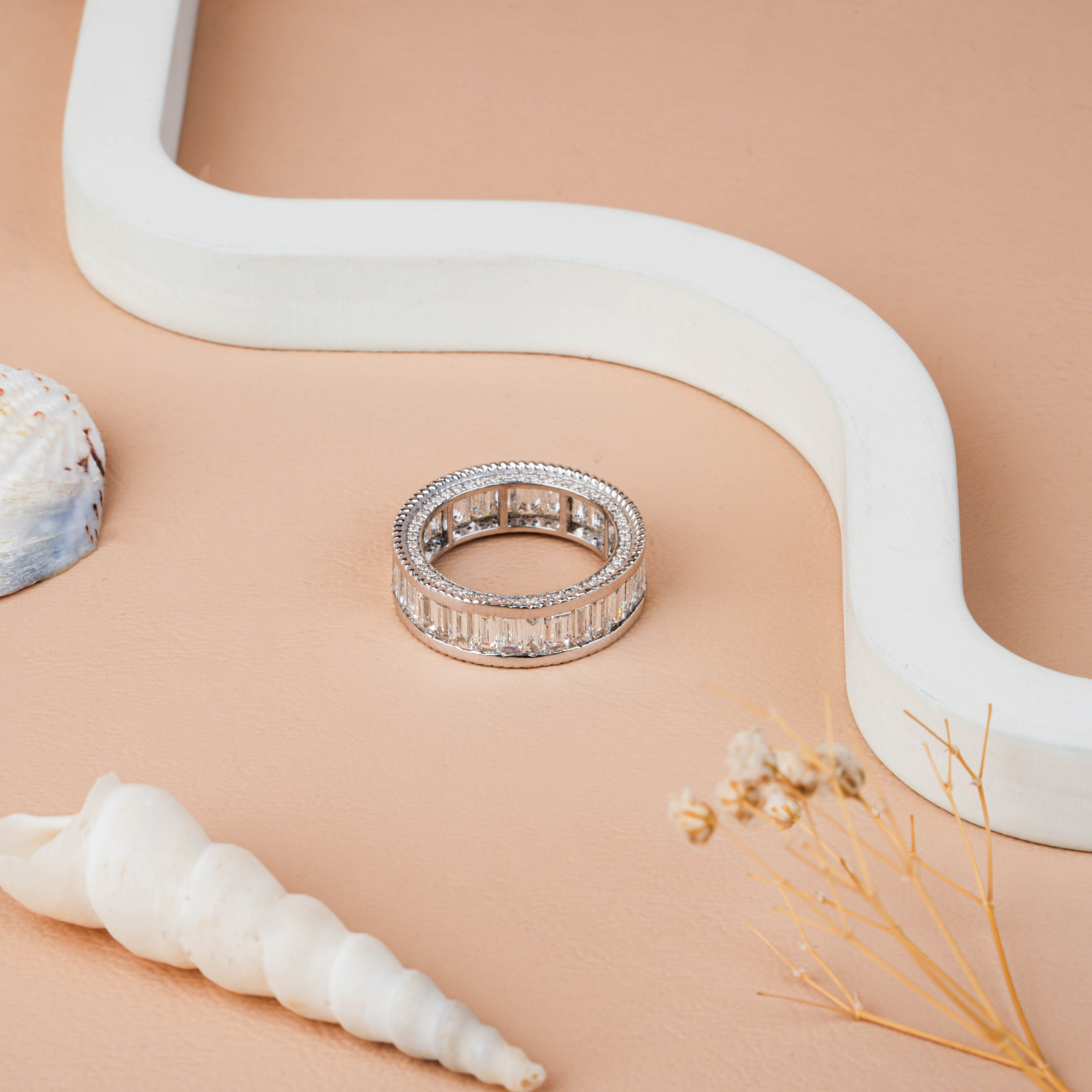 Celebrate everlasting elegance with our Baguette Lab-Grown Diamond Full Eternity Wedding Band, designed for those who cherish timeless brilliance. This sleek band features perfectly aligned baguette-cut lab-grown diamonds set in a seamless 360° circle, symbolizing infinite love and commitment. Crafted in your choice of 14K, 18K, or 22K White, Yellow, or Rose Gold, as well as Platinum and Silver, it’s the perfect wedding, anniversary, or milestone gift.