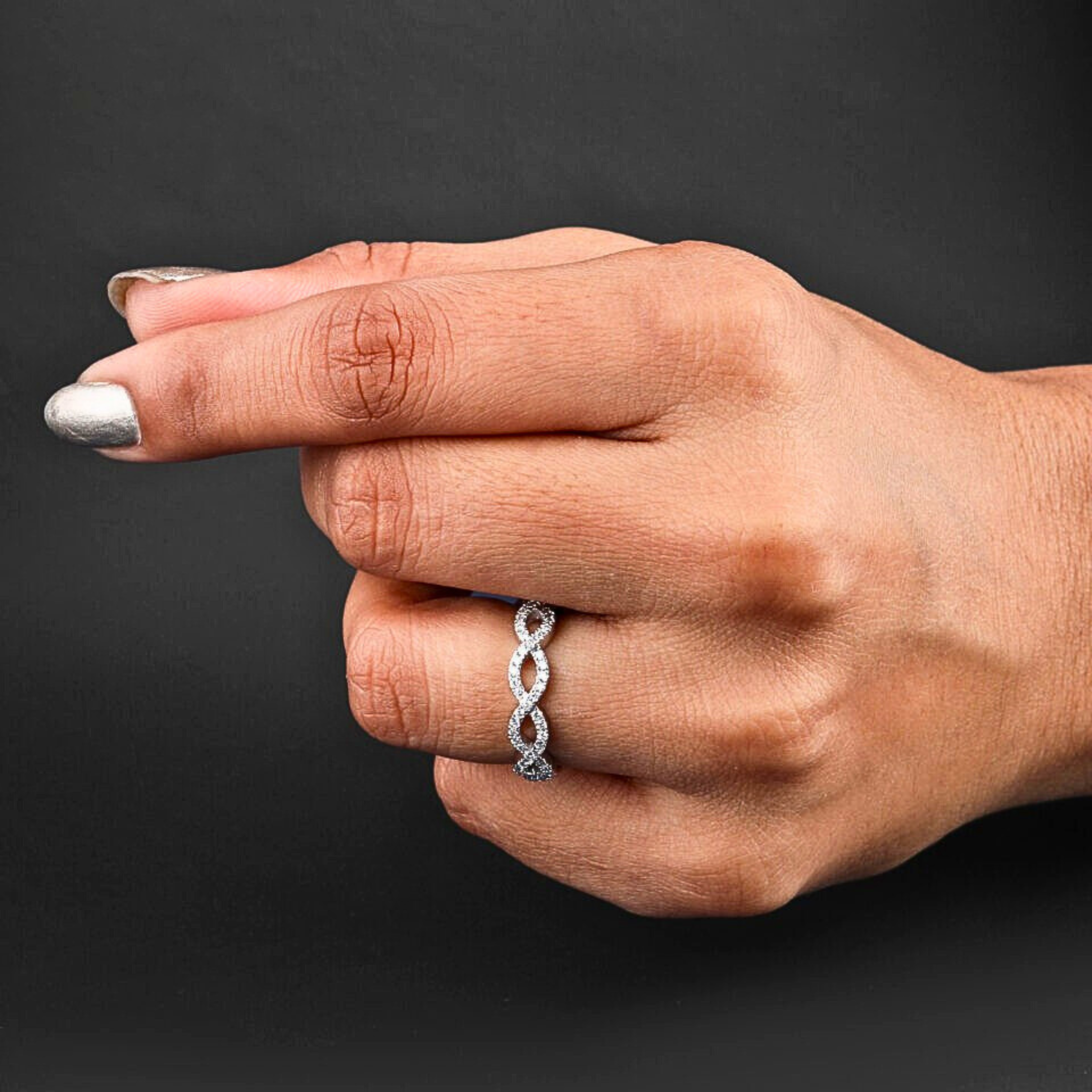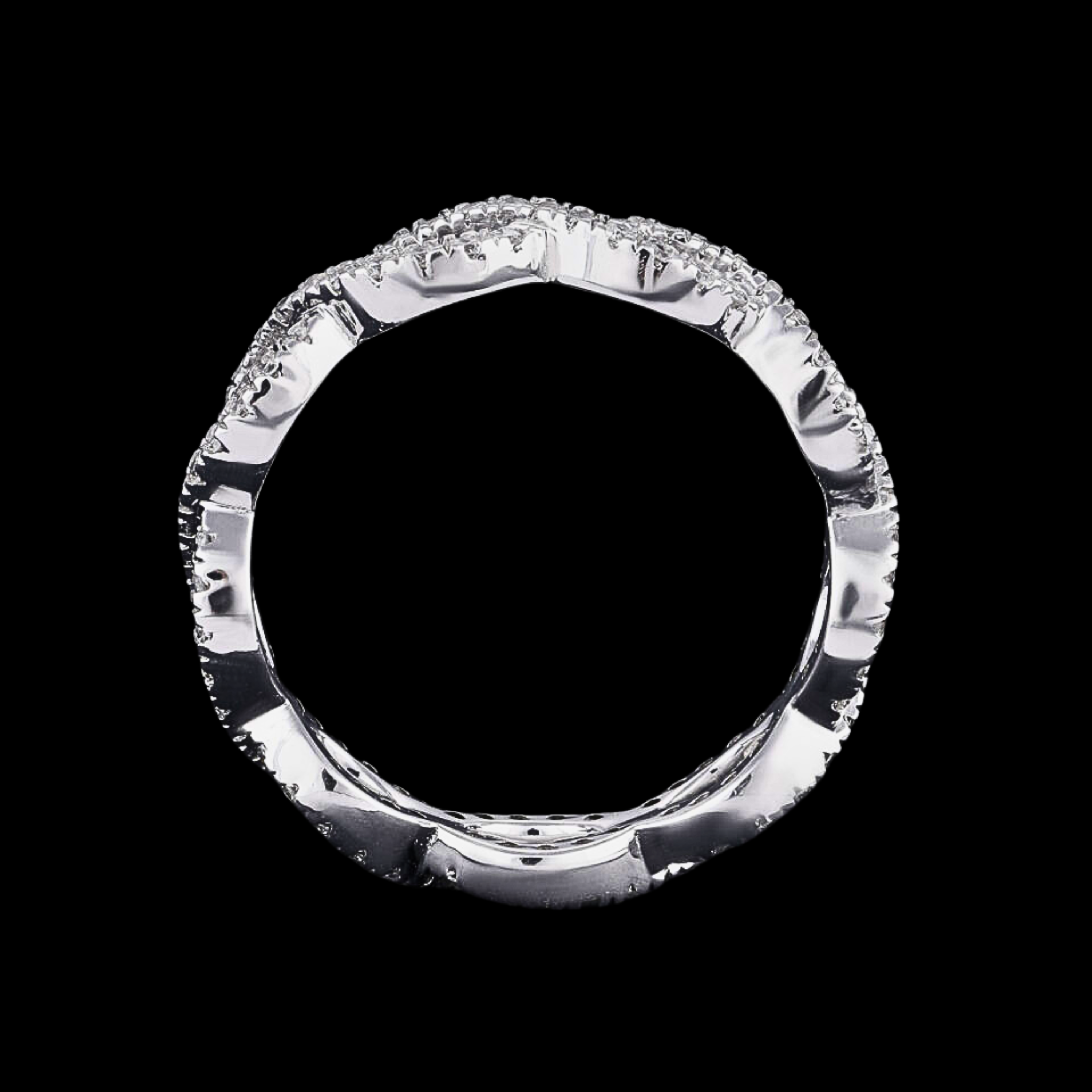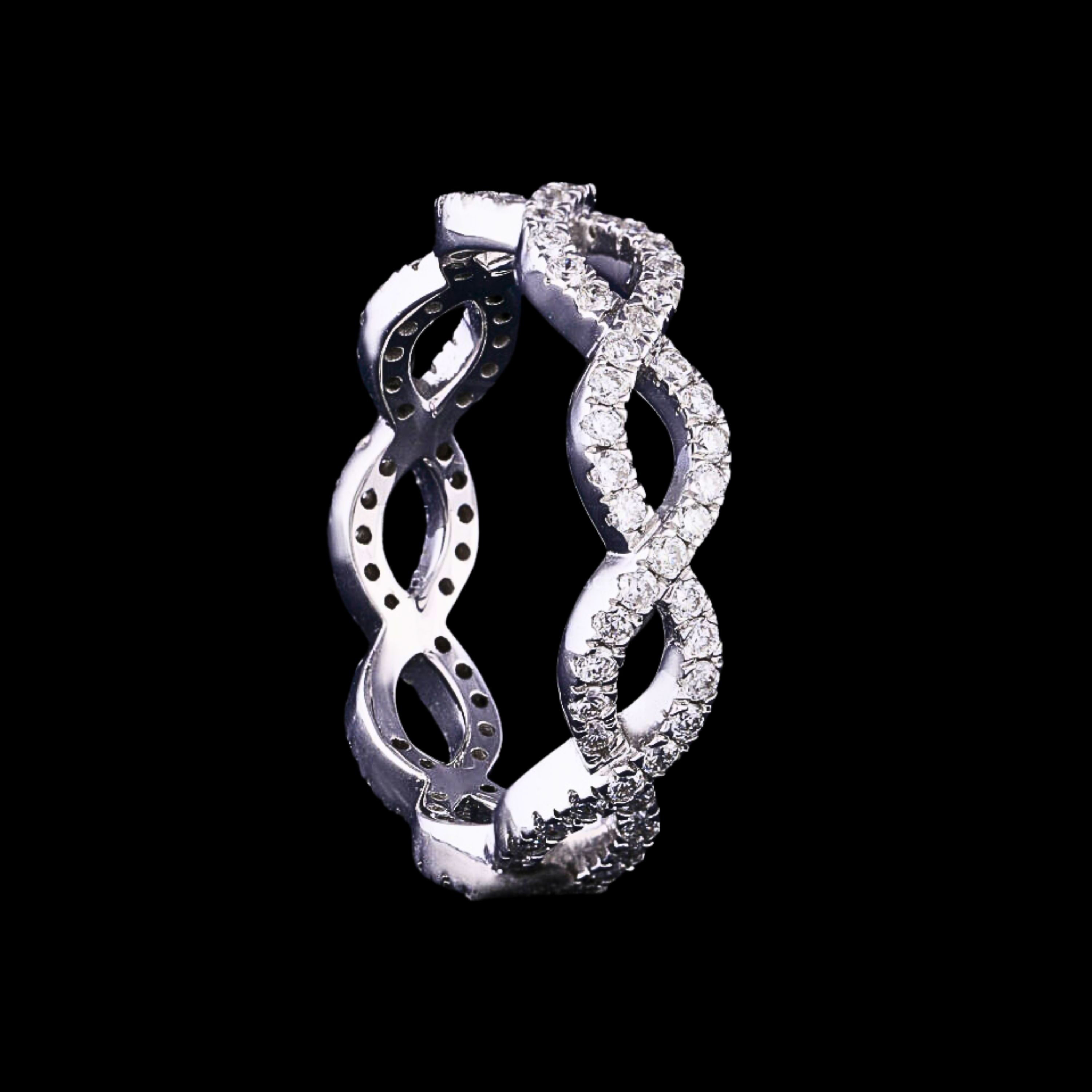This elegant infinity twist eternity band features round brilliant cut lab grown diamonds totaling 0.80 CT, graded EF color and VS1 clarity for exceptional sparkle. The continuous infinity design symbolizes everlasting love and is crafted in solid 10KT, 14KT, or 18KT gold, available in white, yellow, or rose tones. Hallmarked for authenticity, this refined diamond band is perfect for weddings, anniversaries, or meaningful everyday luxury with a modern, timeless appeal.