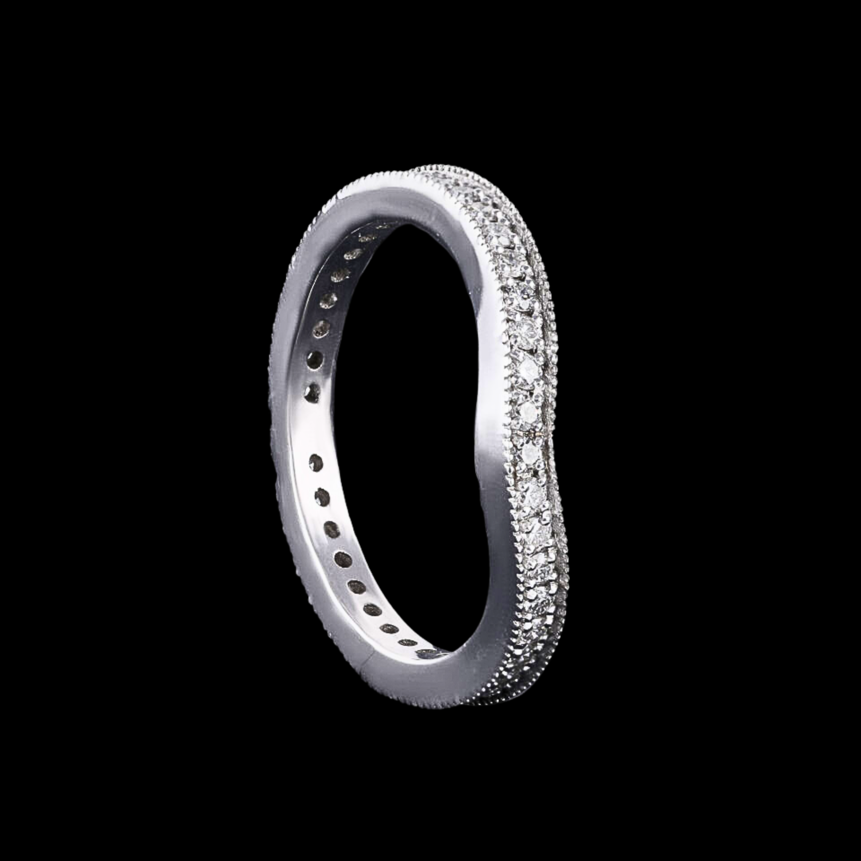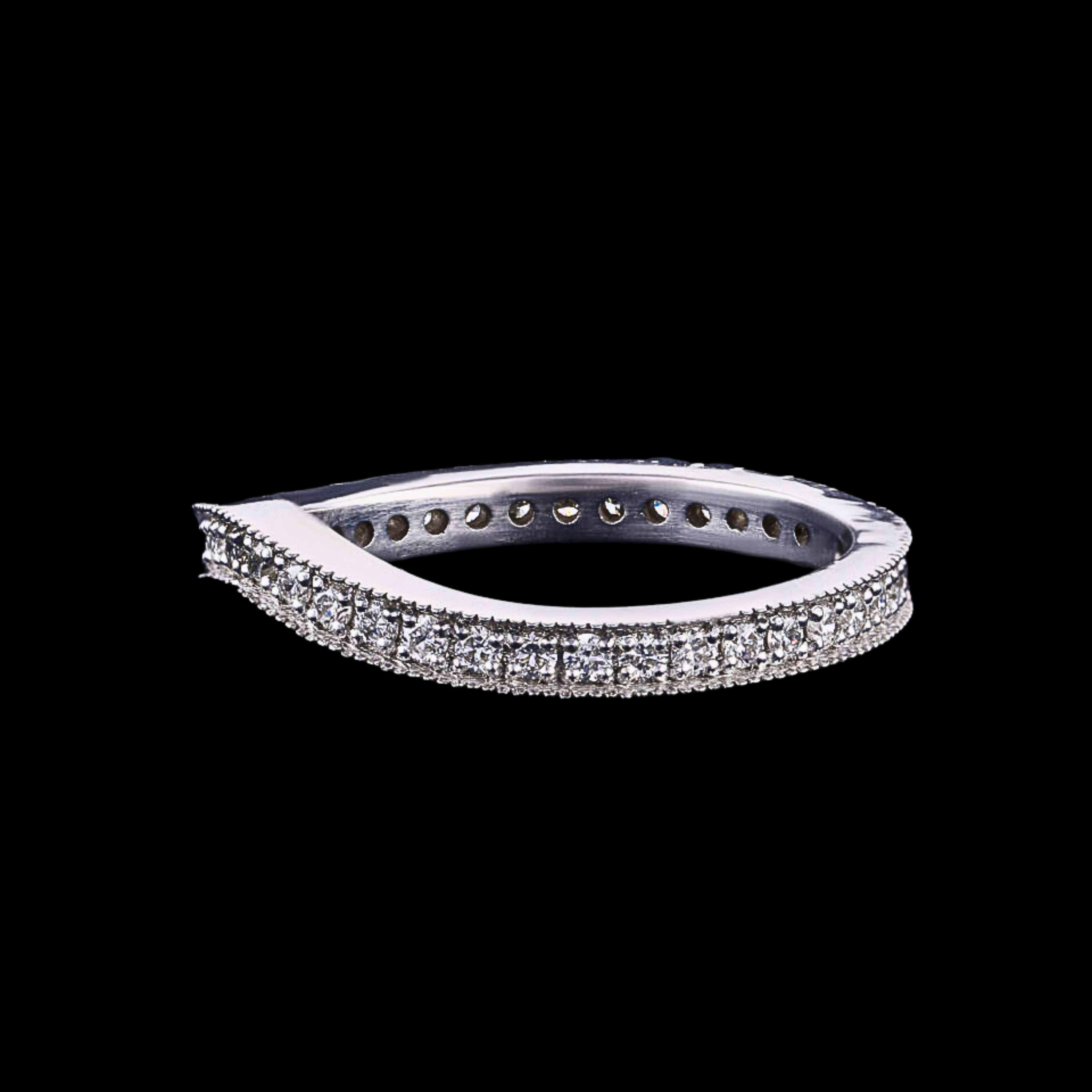 This elegant curved pavé wedding band showcases 34 round cut lab grown diamonds totaling 0.34 CT, graded E-F color and VS-VVS clarity for refined brilliance. Expertly handcrafted with ideal polish and excellent symmetry, the gentle contour is designed to pair seamlessly with engagement rings. Crafted in solid 10KT, 14KT, or 18KT gold and available in white, yellow, or rose gold, the ring is hallmarked for authenticity and offers timeless bridal elegance with a modern, ethical touch.