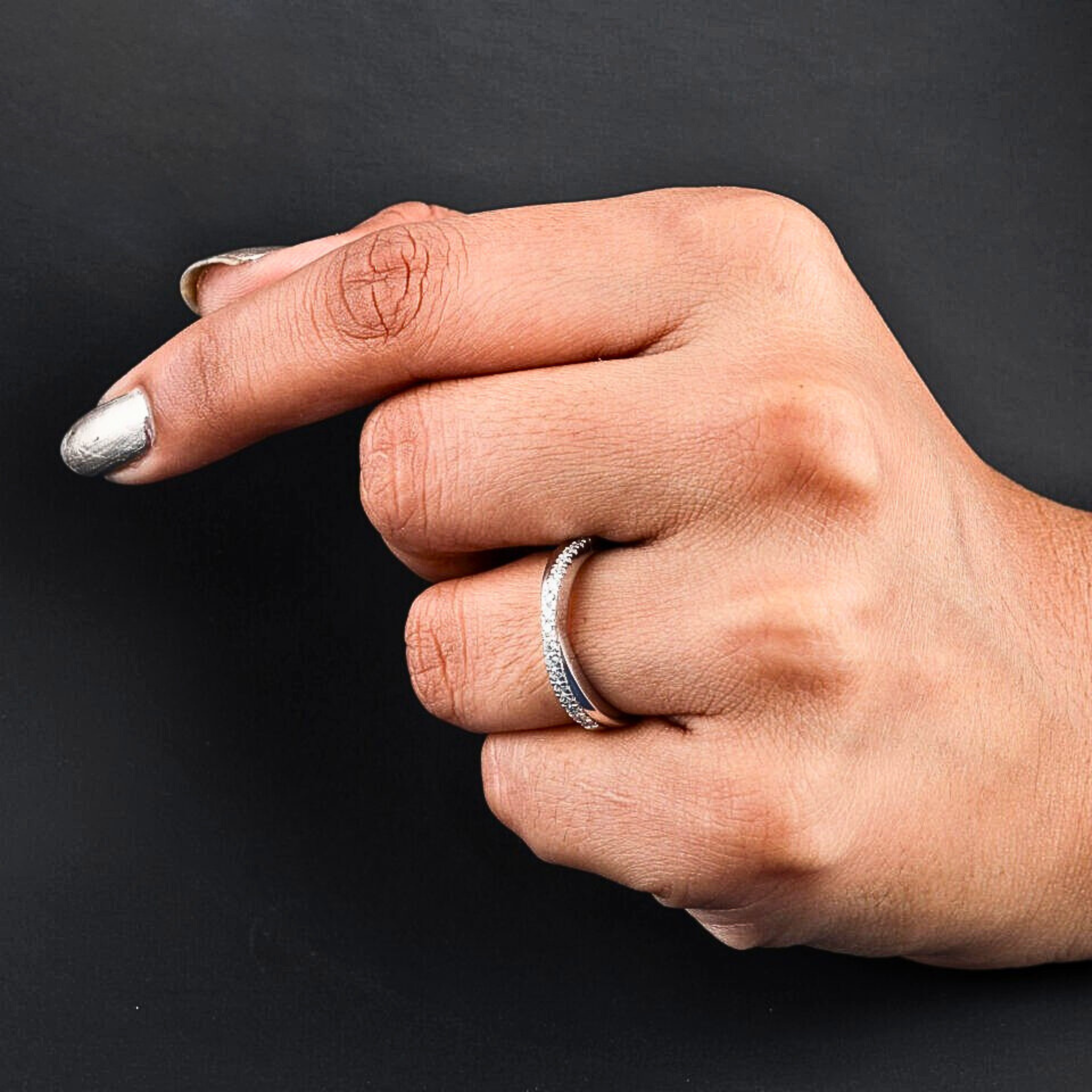 This Round Cut Diamond Crossover Sleek Wedding Band blends modern elegance with timeless craftsmanship. Featuring 17 round brilliant lab grown diamonds (approx. 0.25 CT total weight), each stone is expertly set to follow a graceful crossover curve that adds subtle brilliance and contemporary style. Hand-polished by skilled artisans, this ring is crafted in solid gold (10KT, 14KT, or 18KT) and available in White, Yellow, or Rose Gold, making it perfect for weddings, stacking, or everyday luxury.