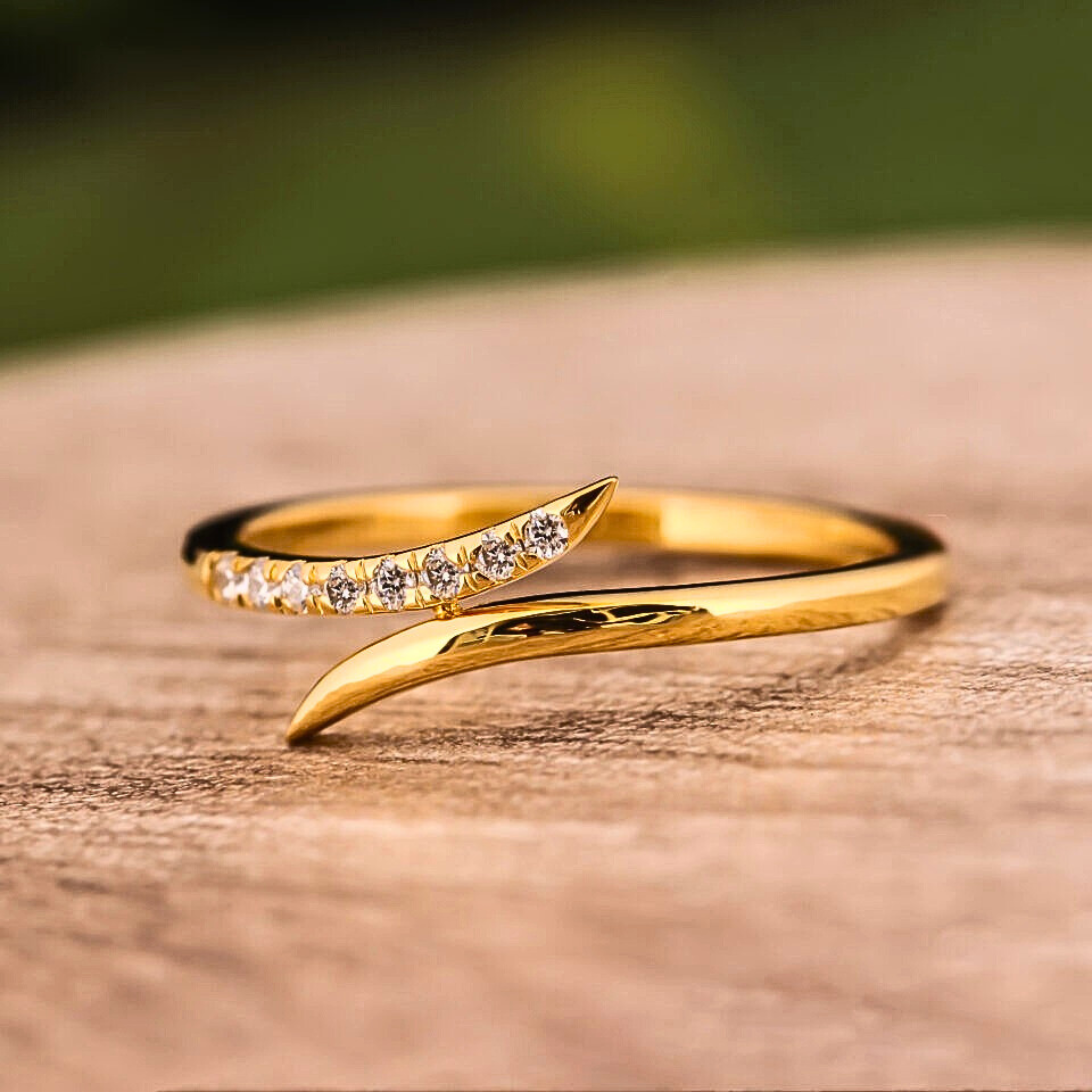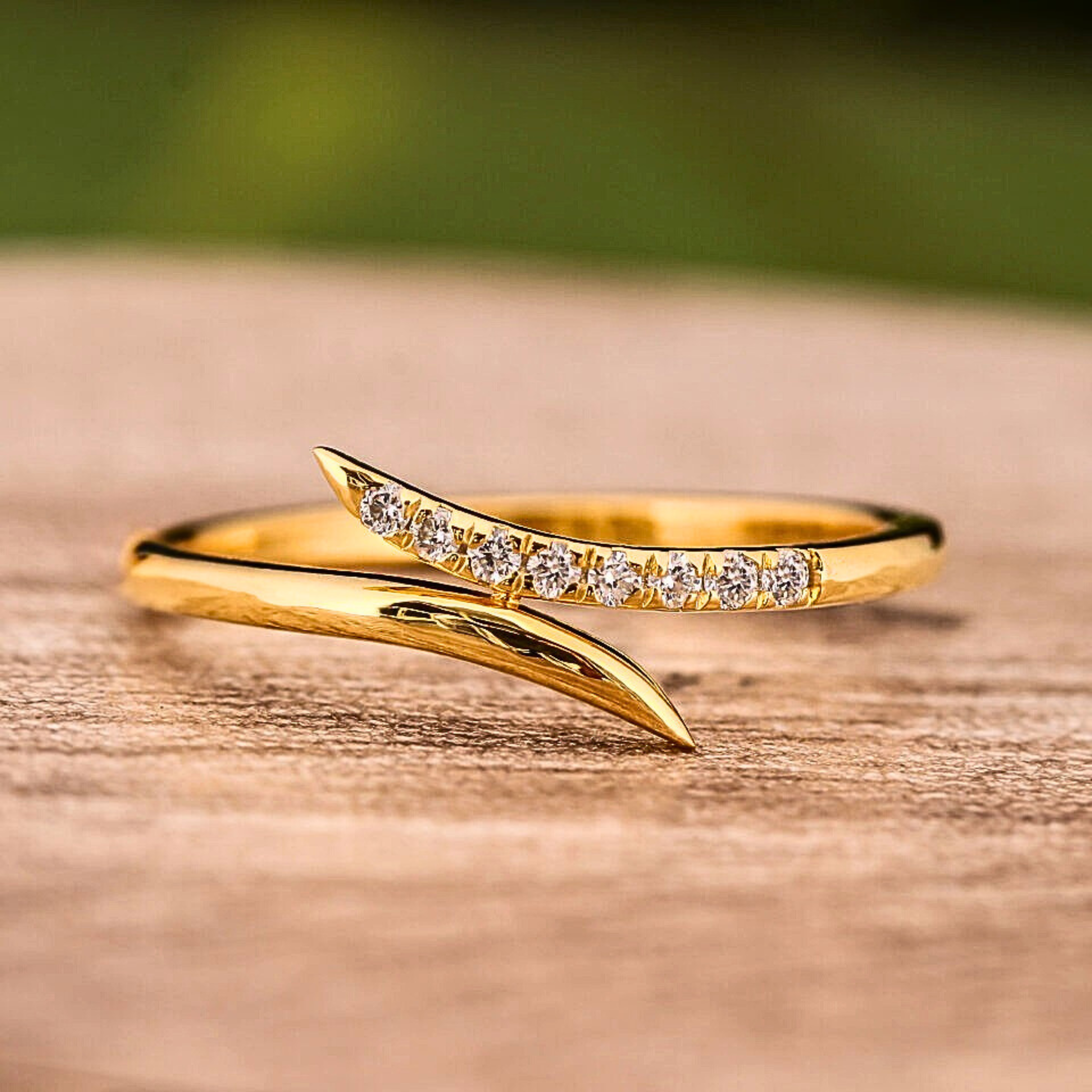 This elegant crossover wave ring features round brilliant lab grown diamonds set in a sleek, curvy bypass design. Crafted in solid gold, the flowing silhouette adds modern charm while remaining lightweight and stackable. Available in 10KT, 14KT, or 18KT gold with yellow, white, or rose tones, this ring is perfect for everyday wear, wedding stacking, or minimalist luxury styling.