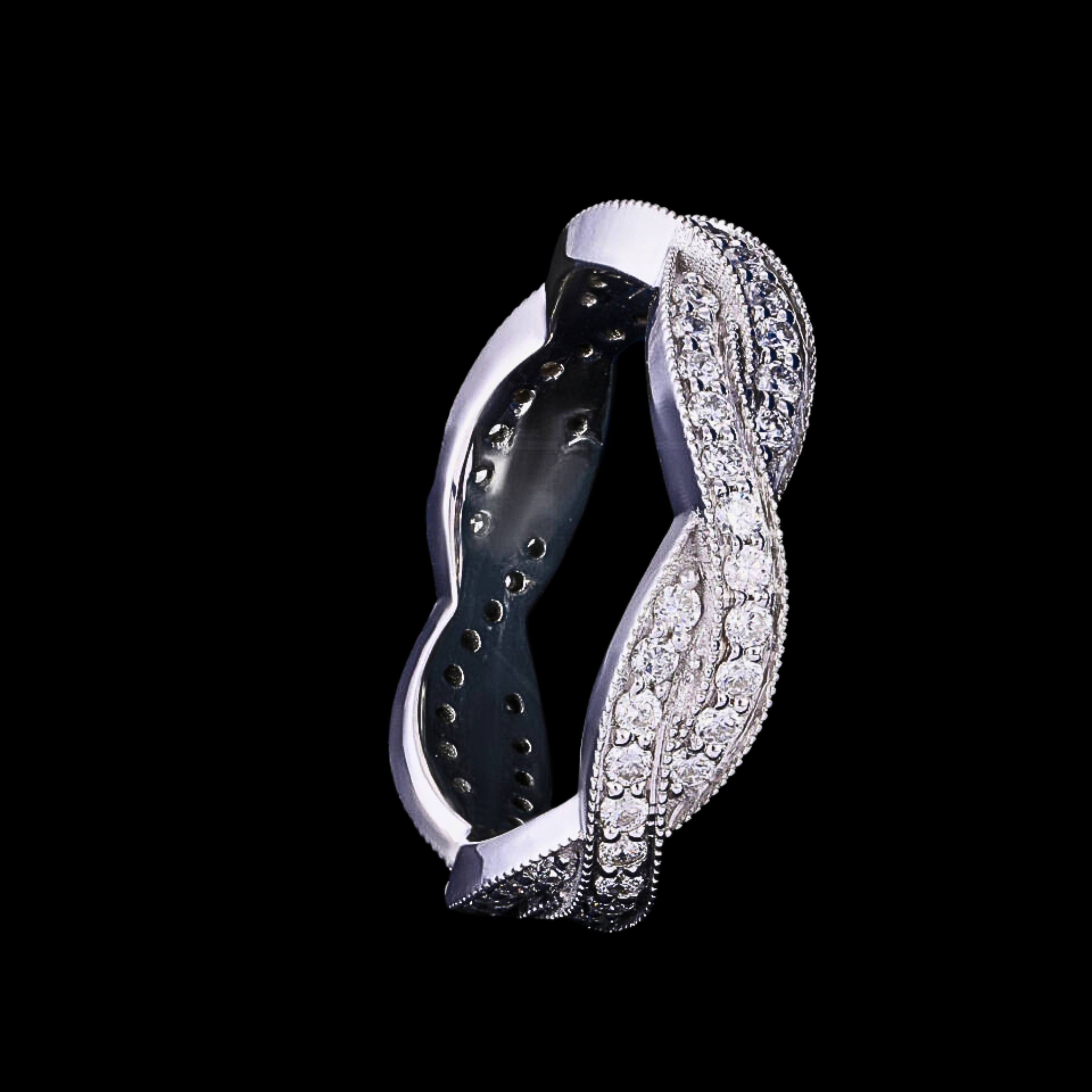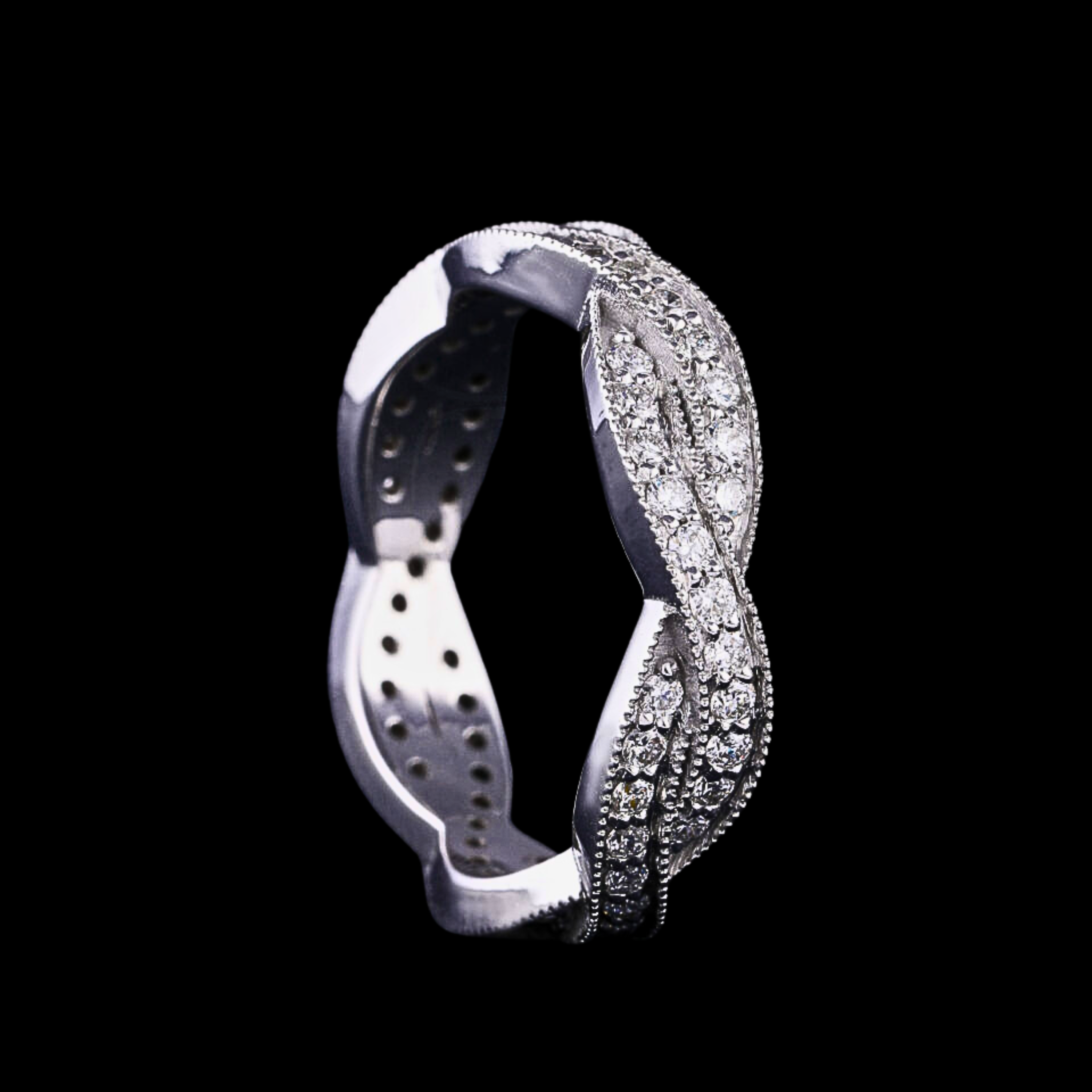 Celebrate timeless beauty with this Twisted Elegance Lab Grown Diamond Eternity Band Ring, crafted to symbolize infinite love and sophistication. Featuring round-cut lab grown diamonds (EF color, VS1 clarity) totaling approximately 0.70 CT, this exquisite twisted design delivers brilliant sparkle from every angle.