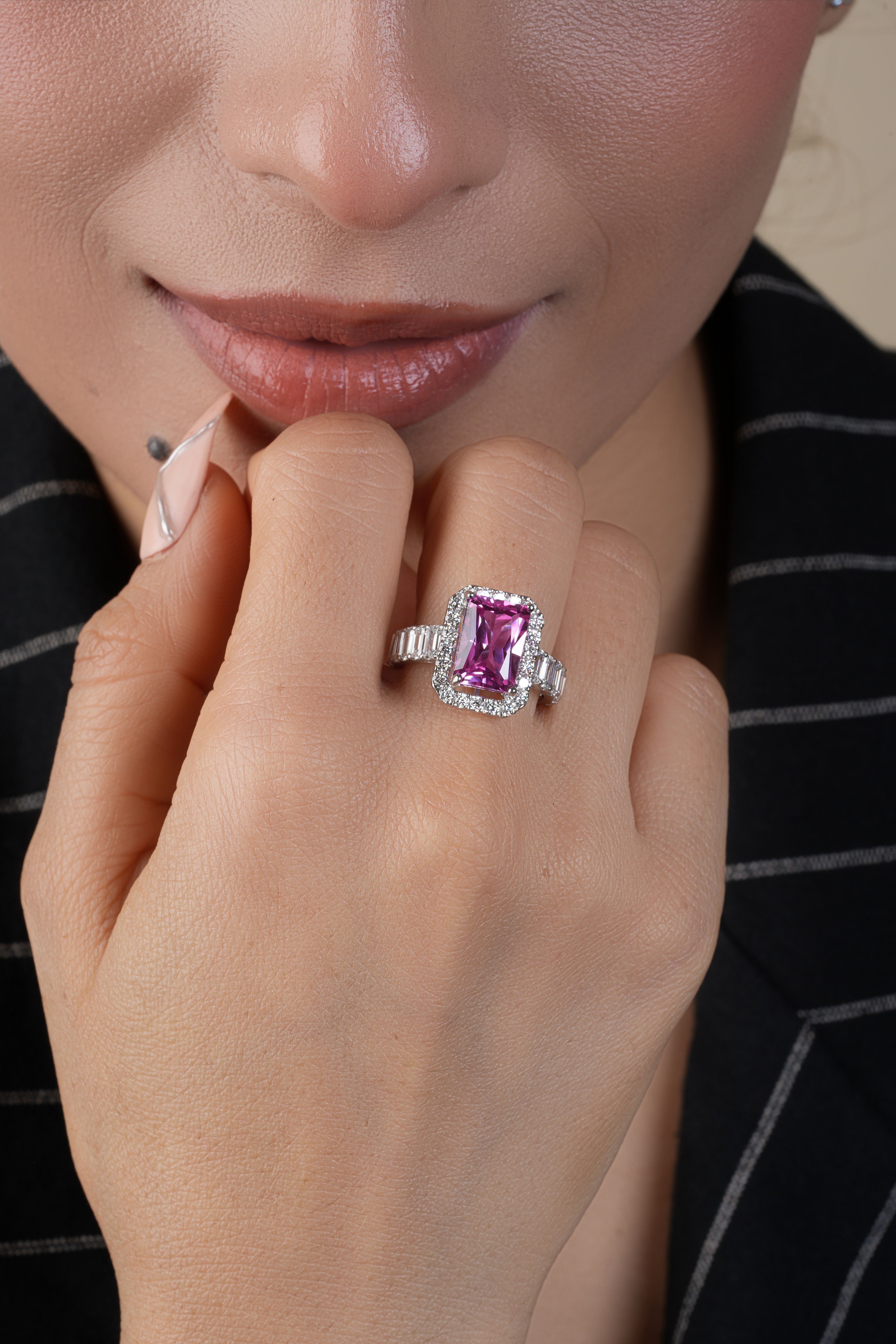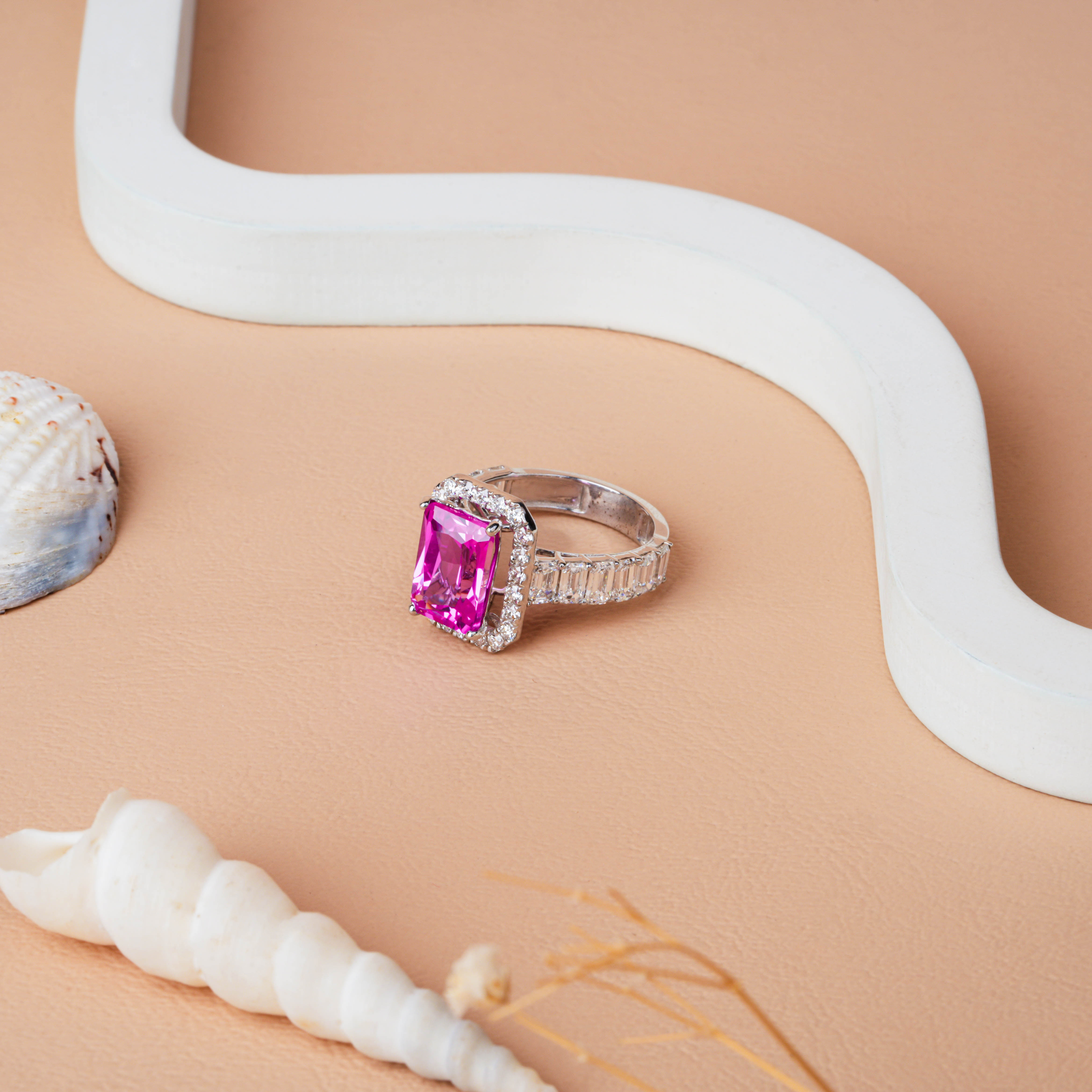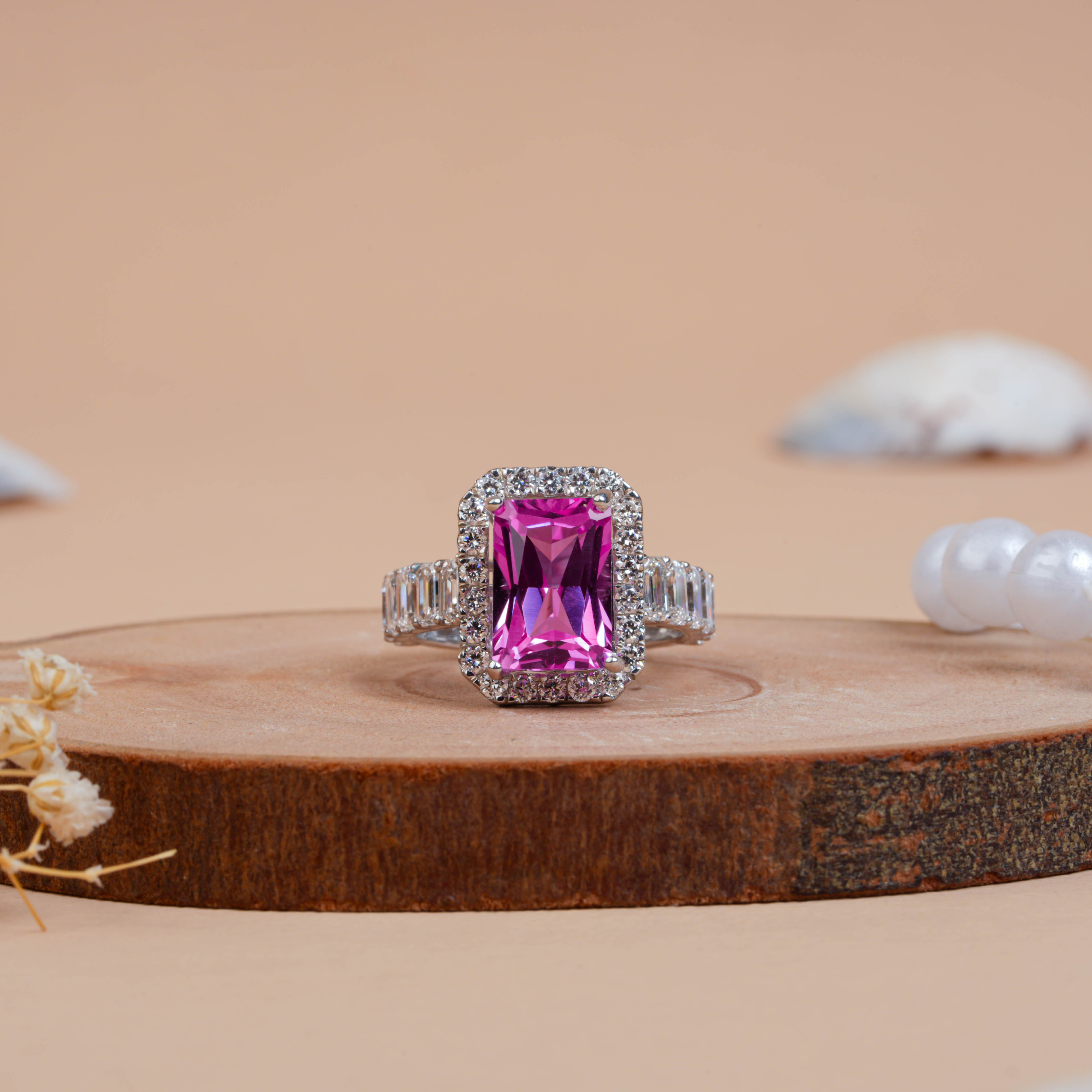 Fall in love with the Radiant Pink Sapphire Emerald Cut Engagement Ring from SaffronStar.store. A mesmerizing emerald-cut pink sapphire captures the essence of love and femininity, accented by brilliant lab-grown diamonds for a touch of timeless sparkle. Handcrafted in 14K or 18K Rose, White, or Yellow Gold, or Platinum, it’s an elegant choice for engagements or anniversaries.