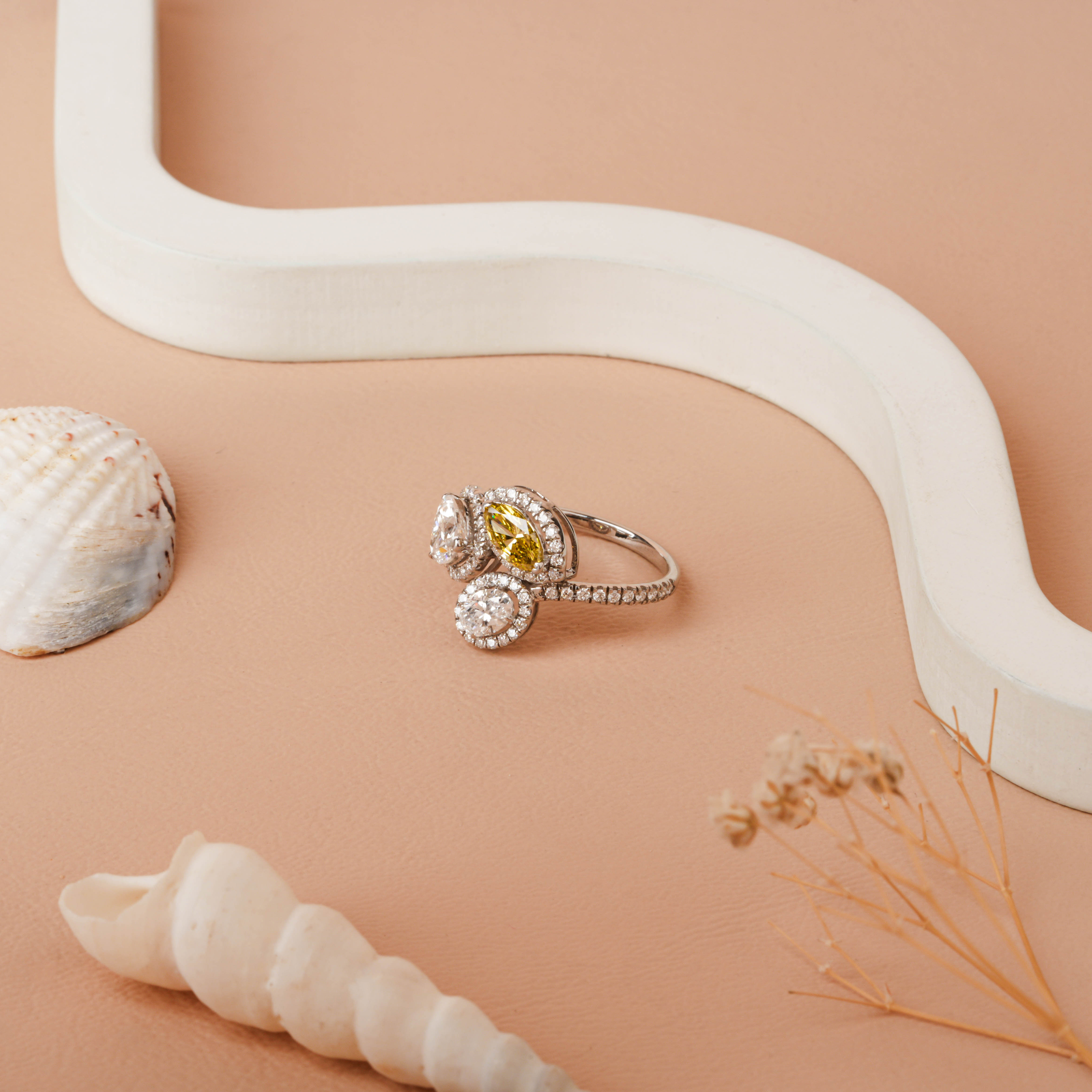 Celebrate love in all its forms with the Oval–Marquise–Heart Cut Diamond Halo Engagement Ring. This unique trio design features oval, marquise, and heart-cut diamonds, each encircled by shimmering halos that create mesmerizing brilliance. Handcrafted in 14K or 18K Rose, White, or Yellow Gold, or Platinum, it’s a captivating choice for engagements, anniversaries, or statement elegance.
