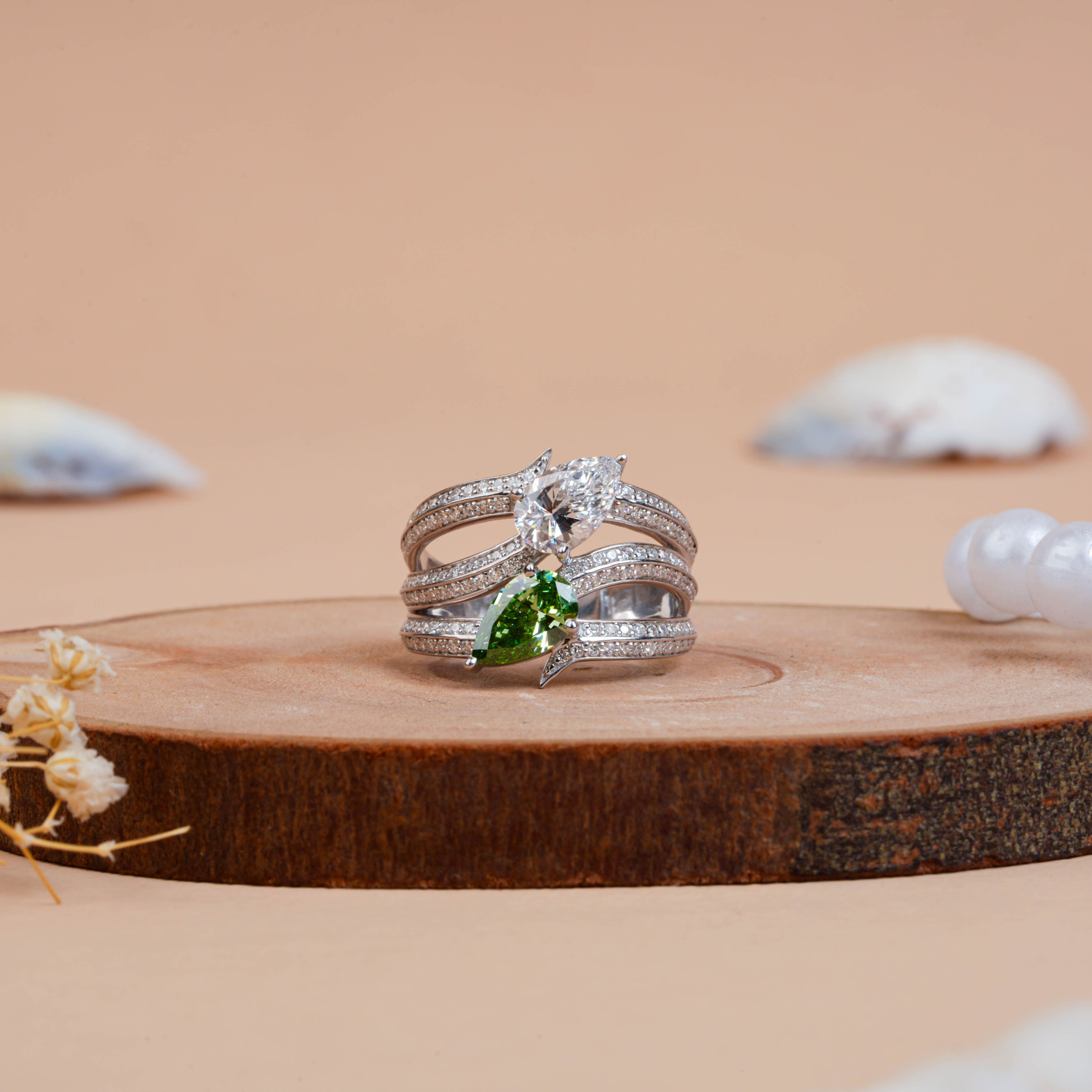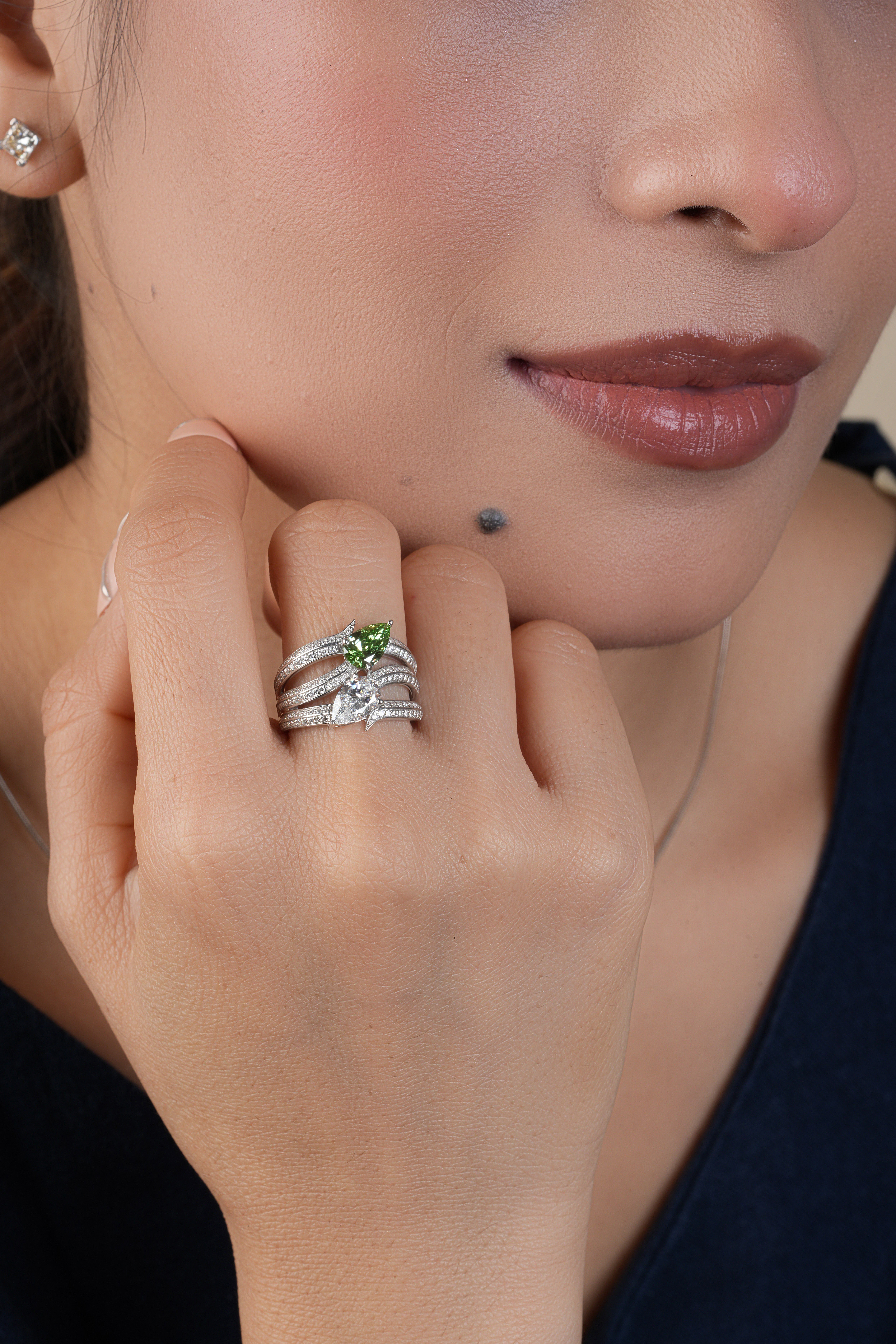 Make a bold statement with the Crossover Multi Layered Pear Cut Diamond Cocktail Ring. Featuring a stunning pear-cut center diamond set within a multi-layered crossover design, this ring radiates modern glamour and captivating brilliance. The layered diamond rows add depth, sparkle, and luxurious dimension. Handcrafted in 14K or 18K Rose, White, or Yellow Gold, or Platinum, it’s a perfect piece for parties, special occasions, or standout evening elegance.