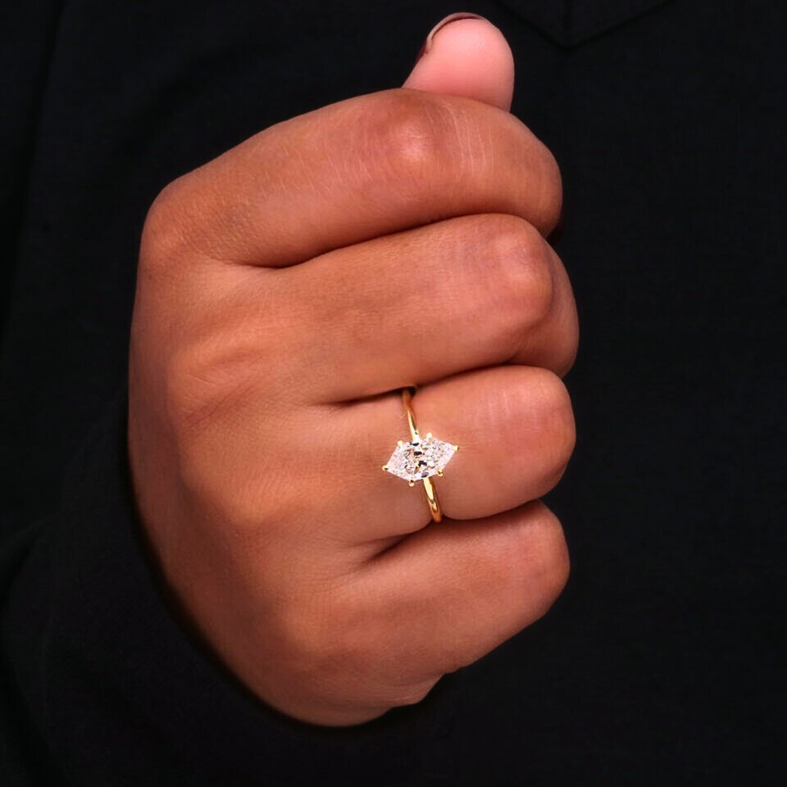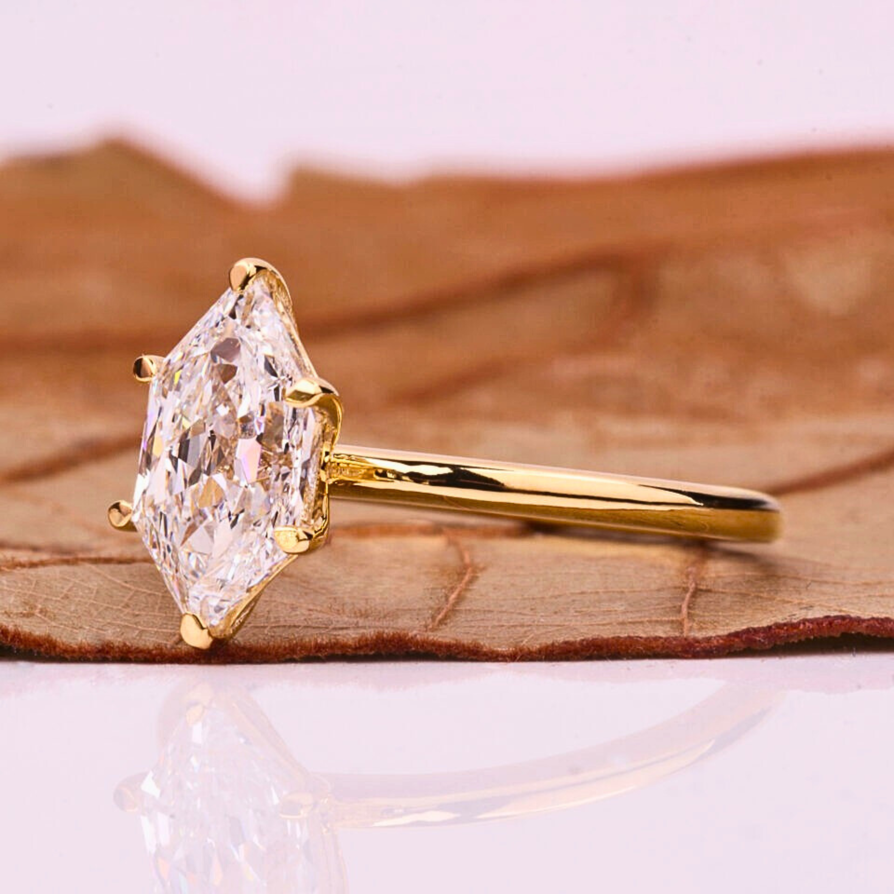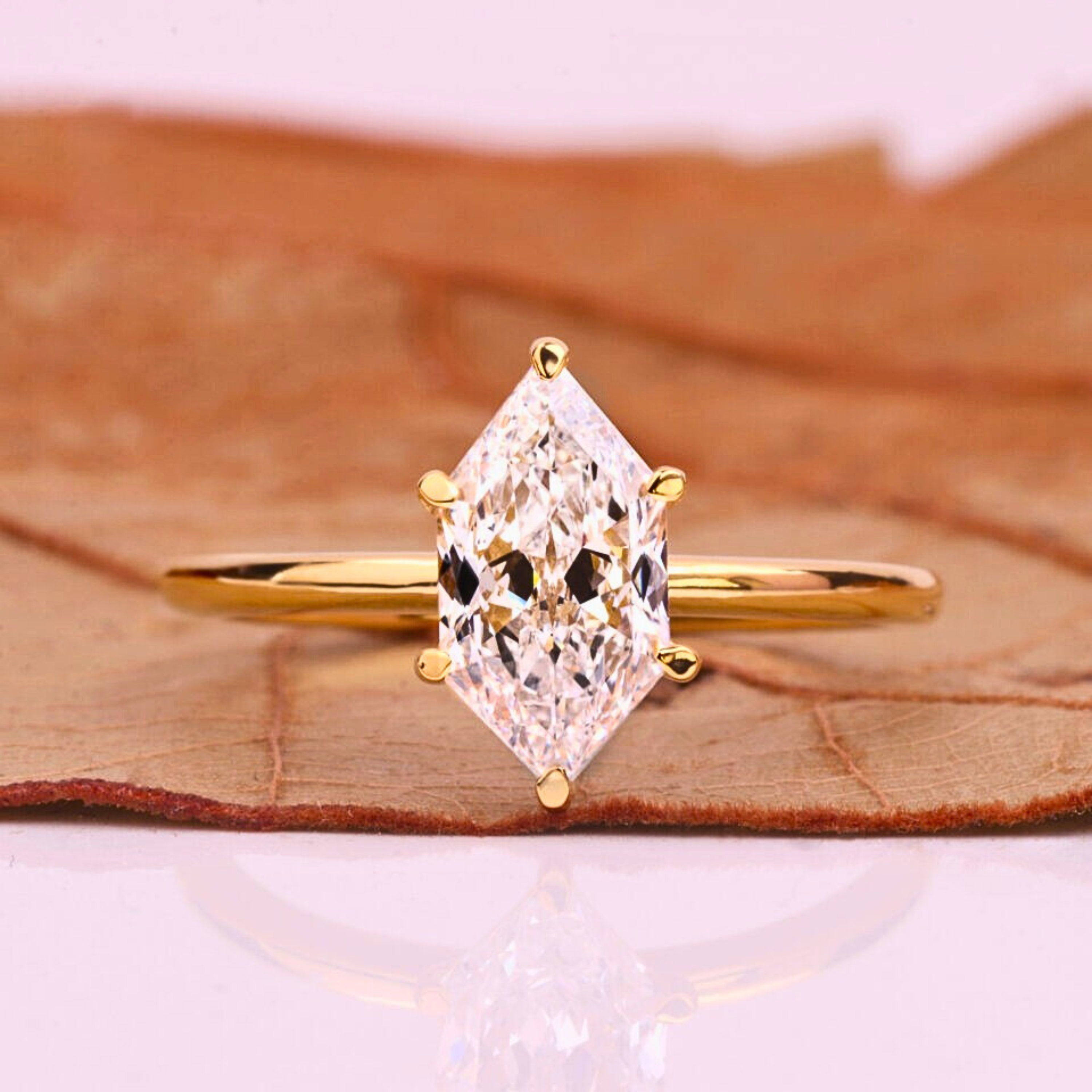 This Dutch Marquise solitaire ring features a stunning 1.50 CT lab grown diamond with EF color and VVS–VS clarity, expertly cut for exceptional brilliance. Set in a sleek solid gold band, it offers a refined and modern silhouette. Available in 10KT, 14KT, or 18KT gold with white, yellow, or rose finishes, and hallmarked for authenticity with a complimentary jewelry certificate.