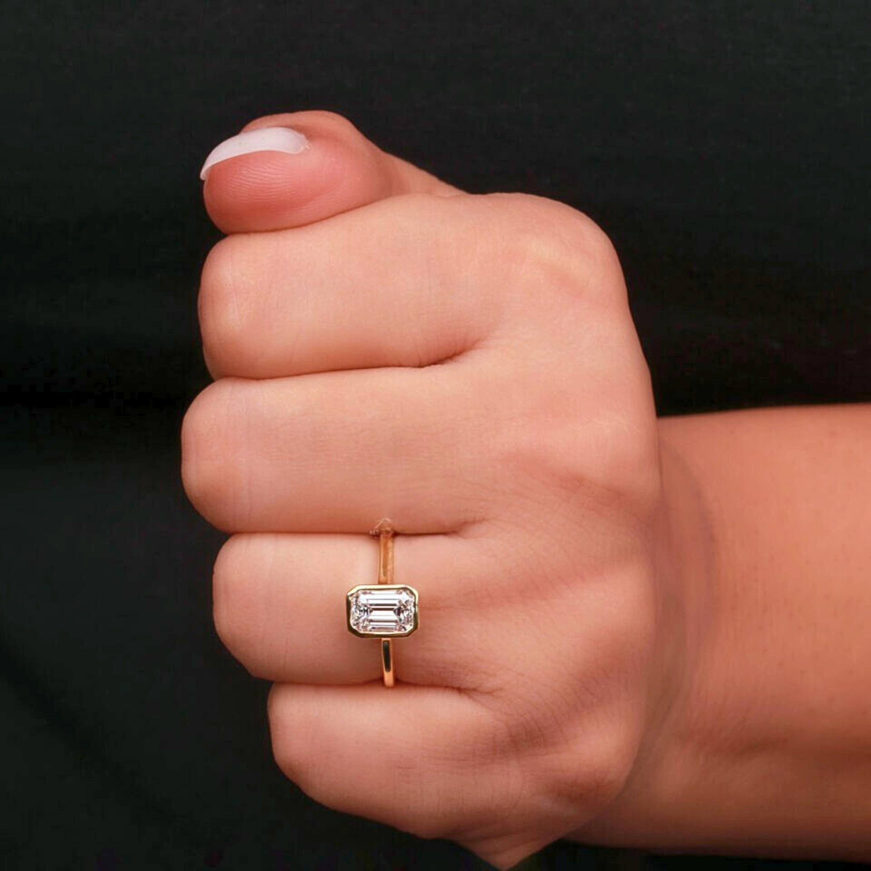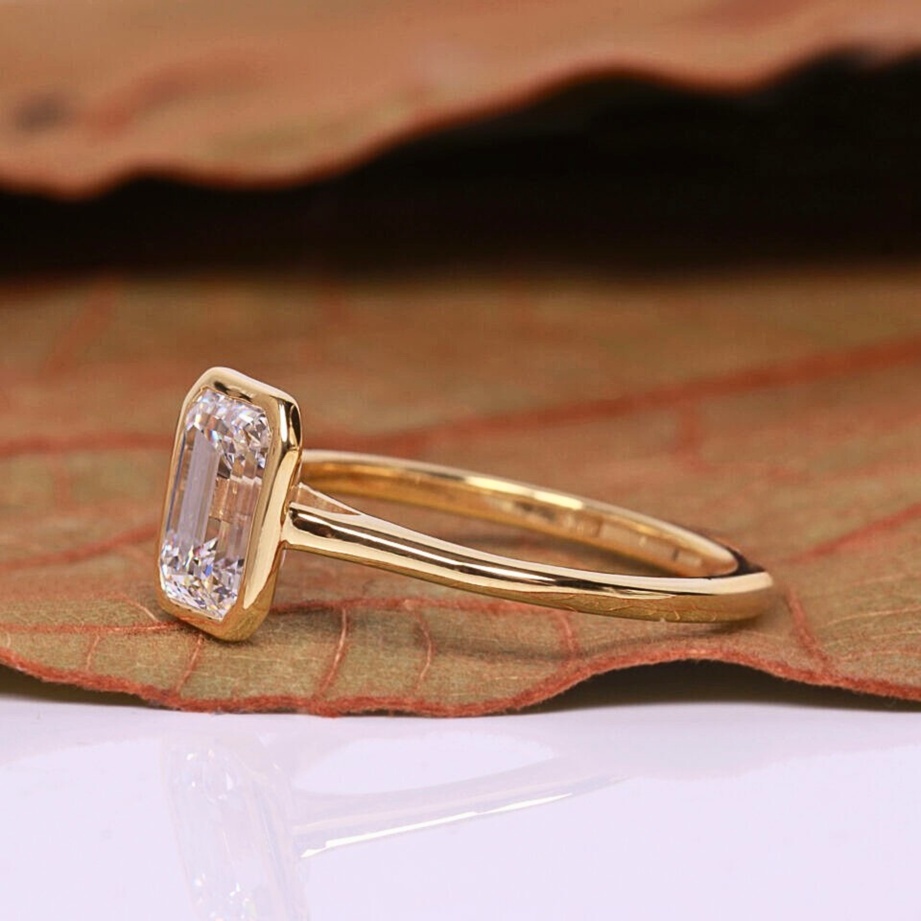 This timeless emerald cut lab grown diamond ring features a sleek bezel setting that enhances the diamond’s crisp step-cut brilliance and modern elegance. Crafted in solid gold, the refined band offers durability, comfort, and a sophisticated silhouette. Available in multiple gold tones, this understated yet luxurious design is perfect for engagements, anniversaries, or everyday fine jewelry wear.
