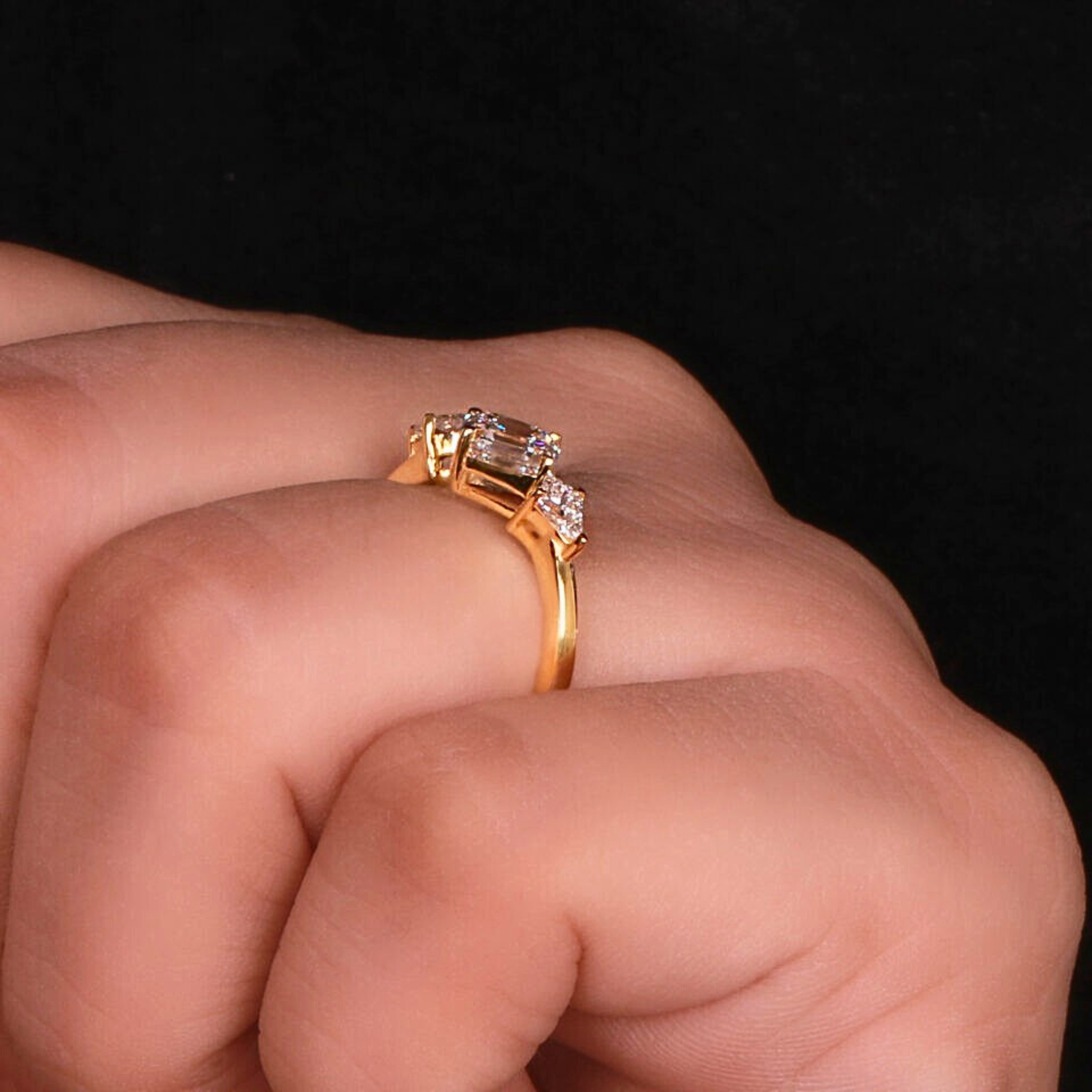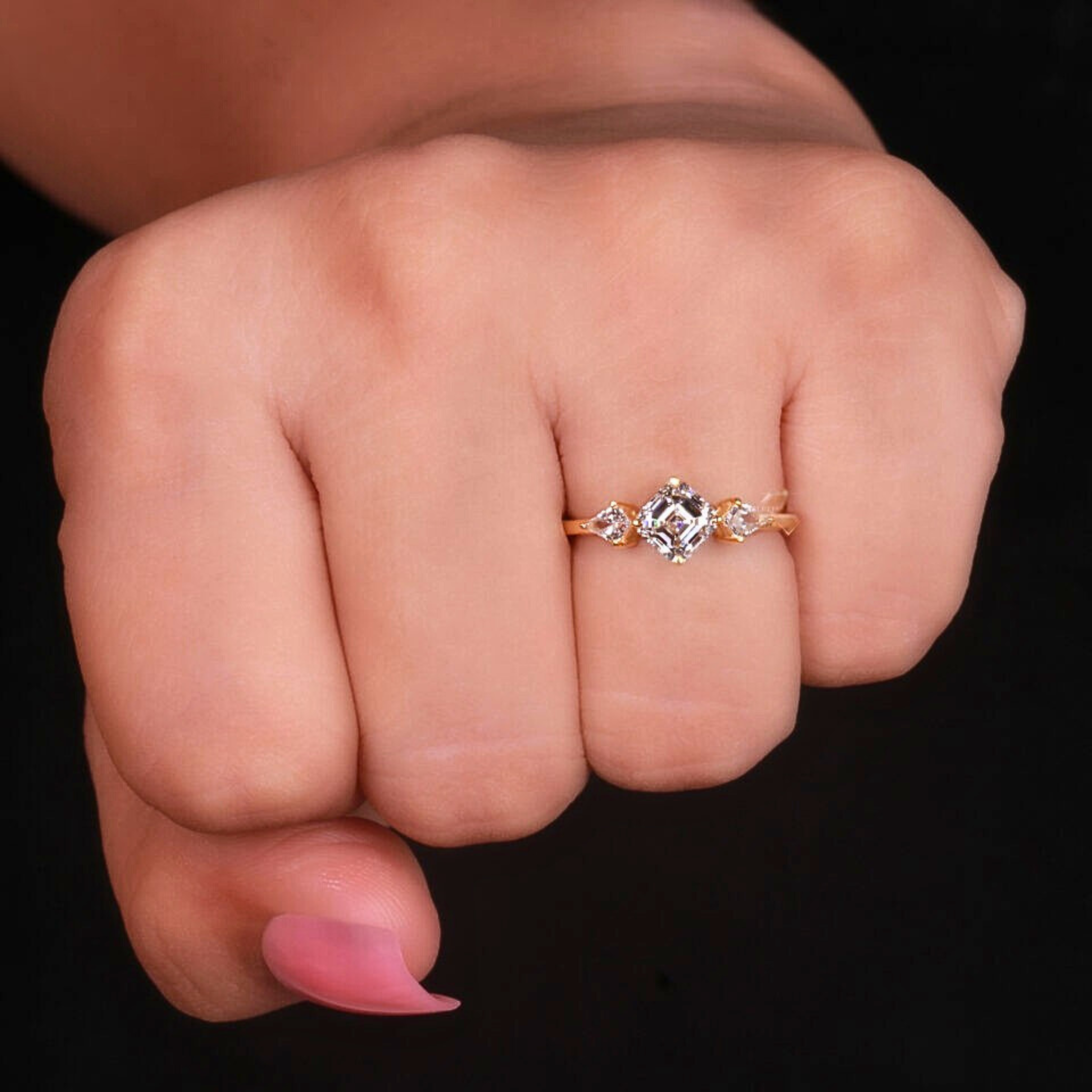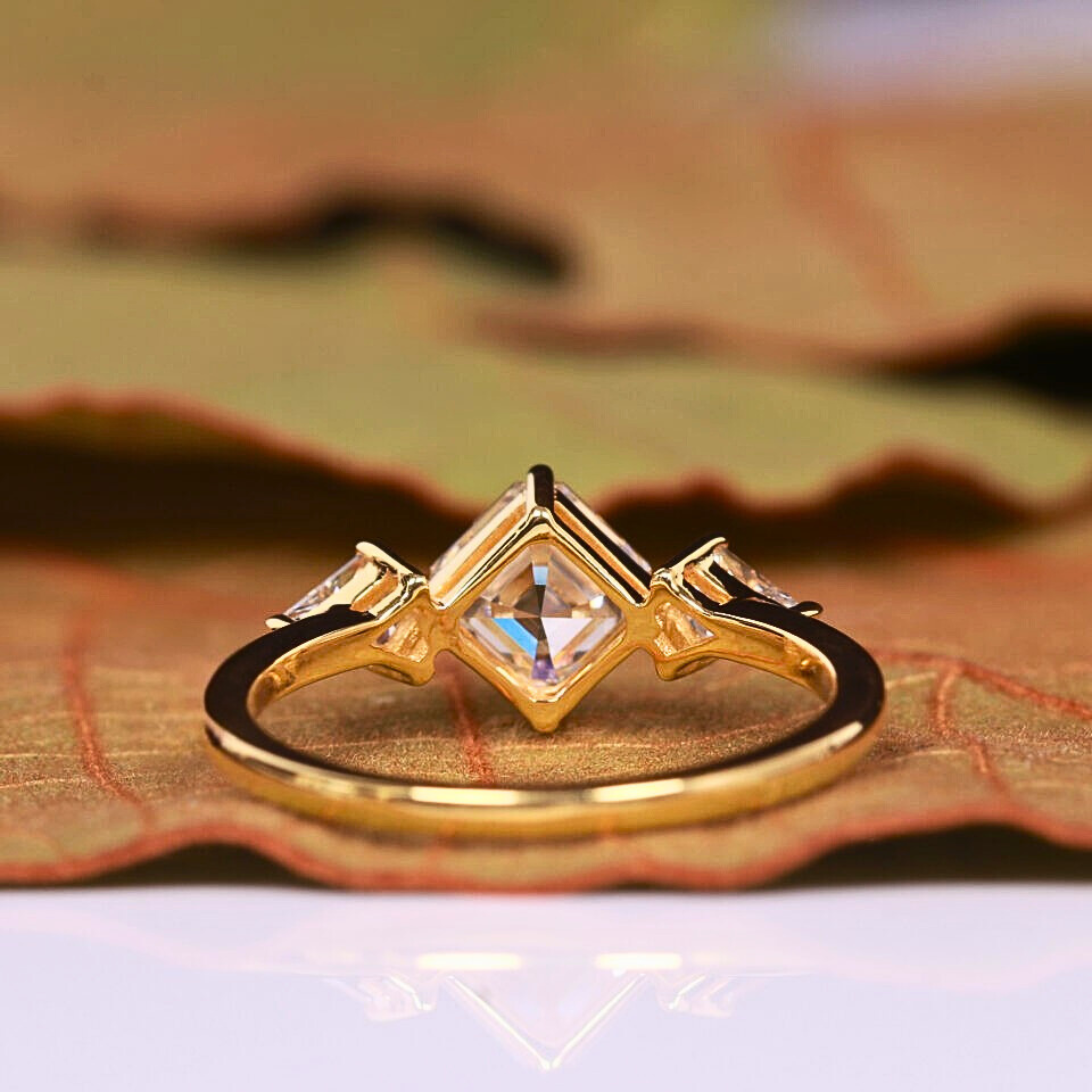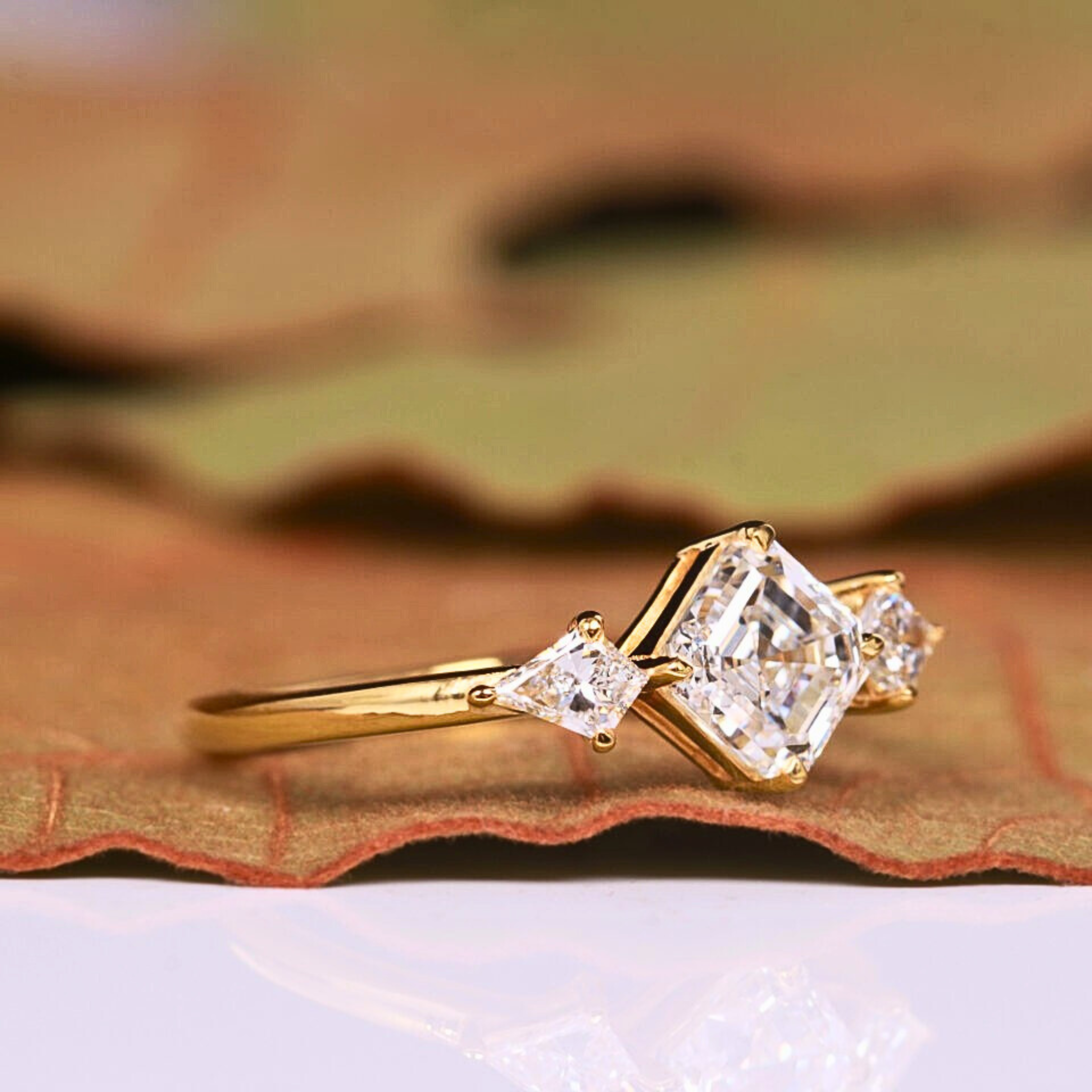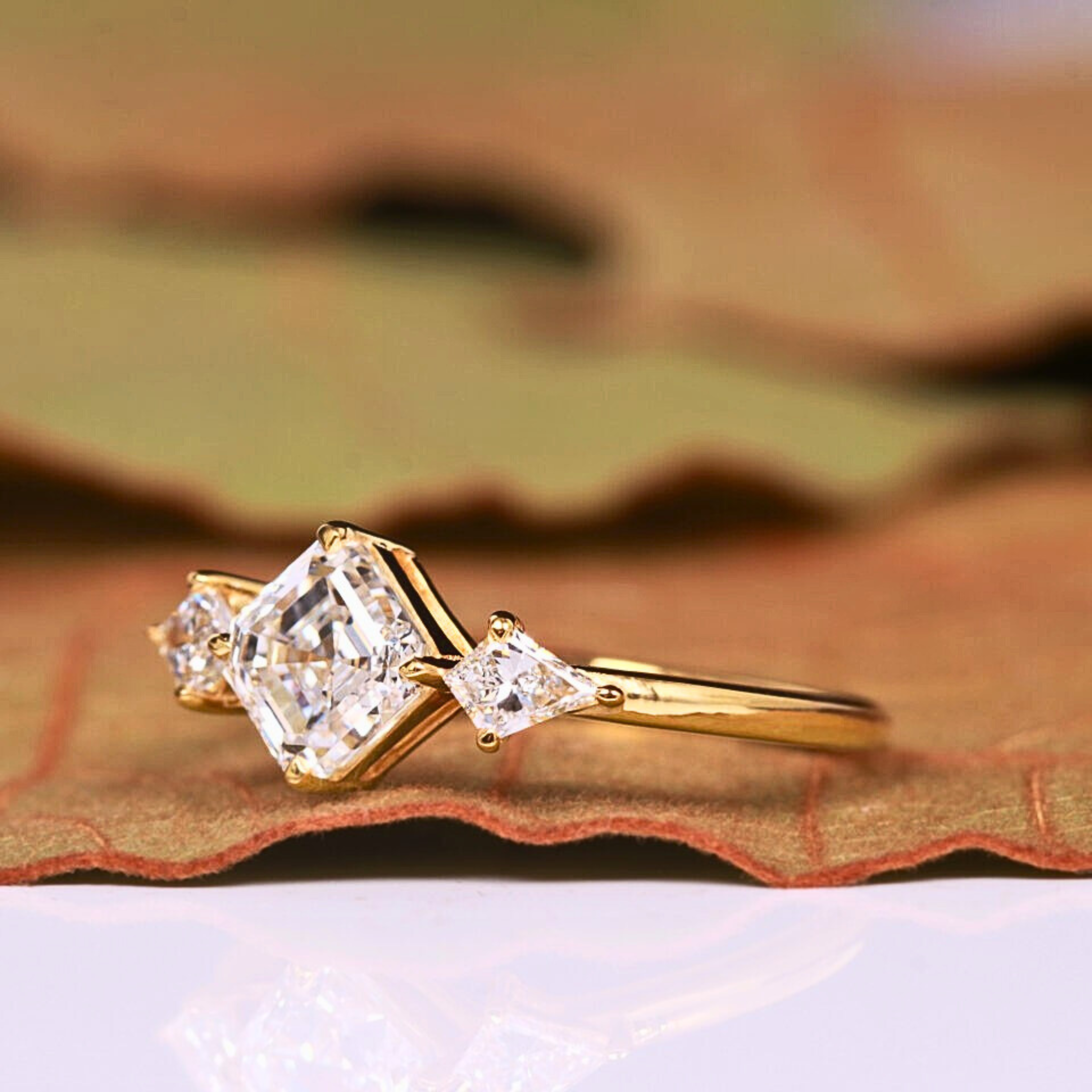 This elegant Asscher Cut Three Stone Lab Grown Diamond Engagement Ring features a stunning 1.00 carat center diamond paired with kite-cut side diamonds for added brilliance and symmetry. Crafted in solid 10K, 14K, or 18K gold, this timeless design blends vintage charm with modern sophistication. Ethically sourced lab-grown diamonds ensure exceptional sparkle, durability, and sustainable luxury—perfect for engagements, weddings, or milestone moments.