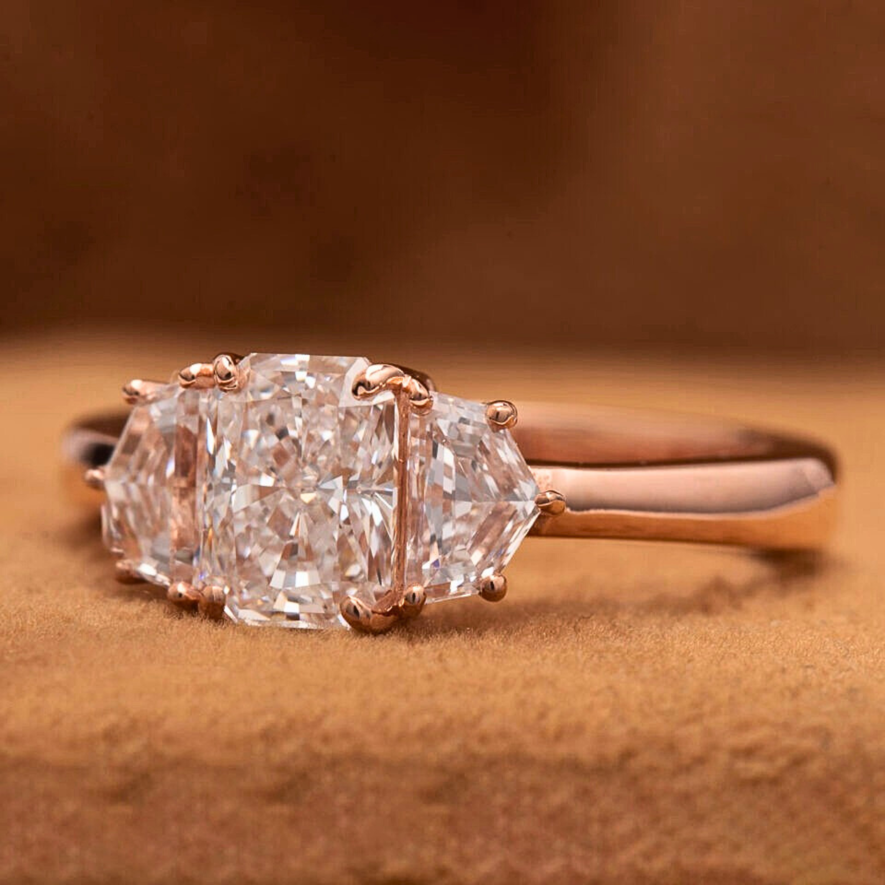 Celebrate timeless elegance with this Radiant and Cadillac Shape Three Stone Lab Grown Diamond Engagement Ring, crafted to perfection for modern luxury lovers. The 1.51 CT D-color VS1 radiant cut center diamond is beautifully complemented by cadillac-cut side diamonds, creating exceptional brilliance and balance. Hand-polished by expert artisans and set in solid gold (10KT, 14KT, or 18KT), this ring is a stunning symbol of love, sophistication, and sustainable luxury.