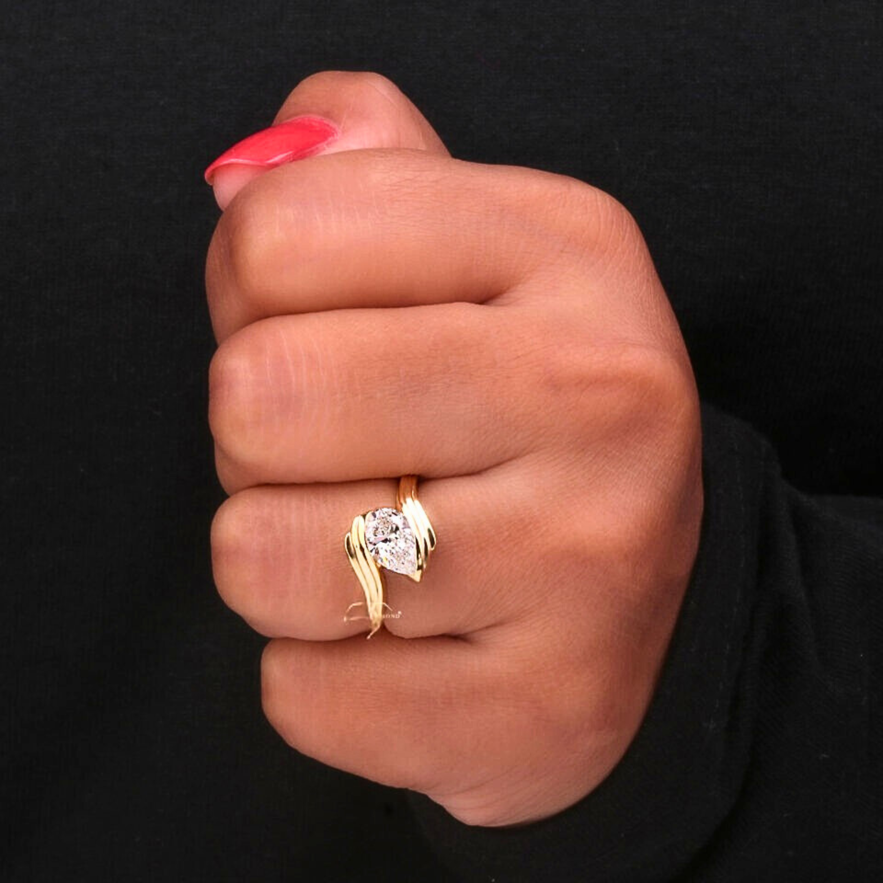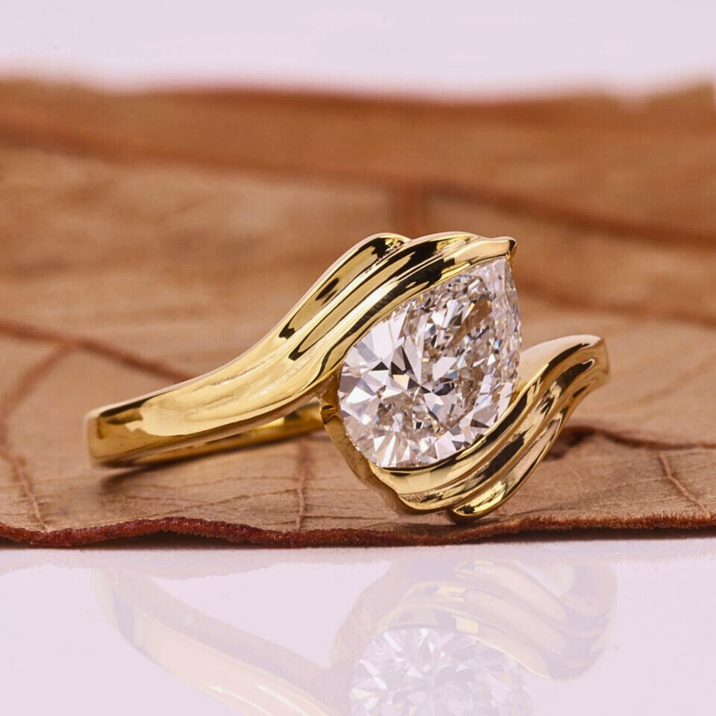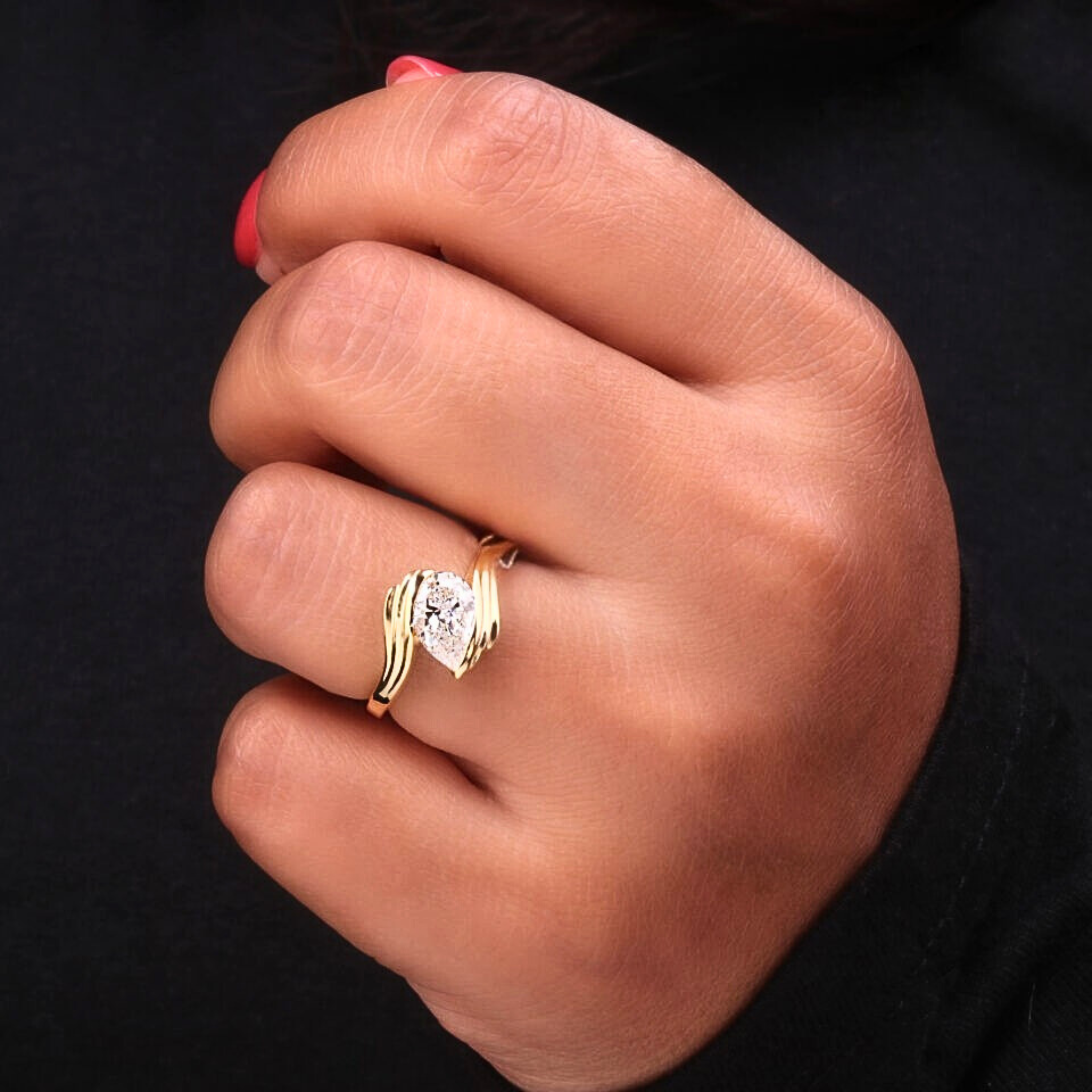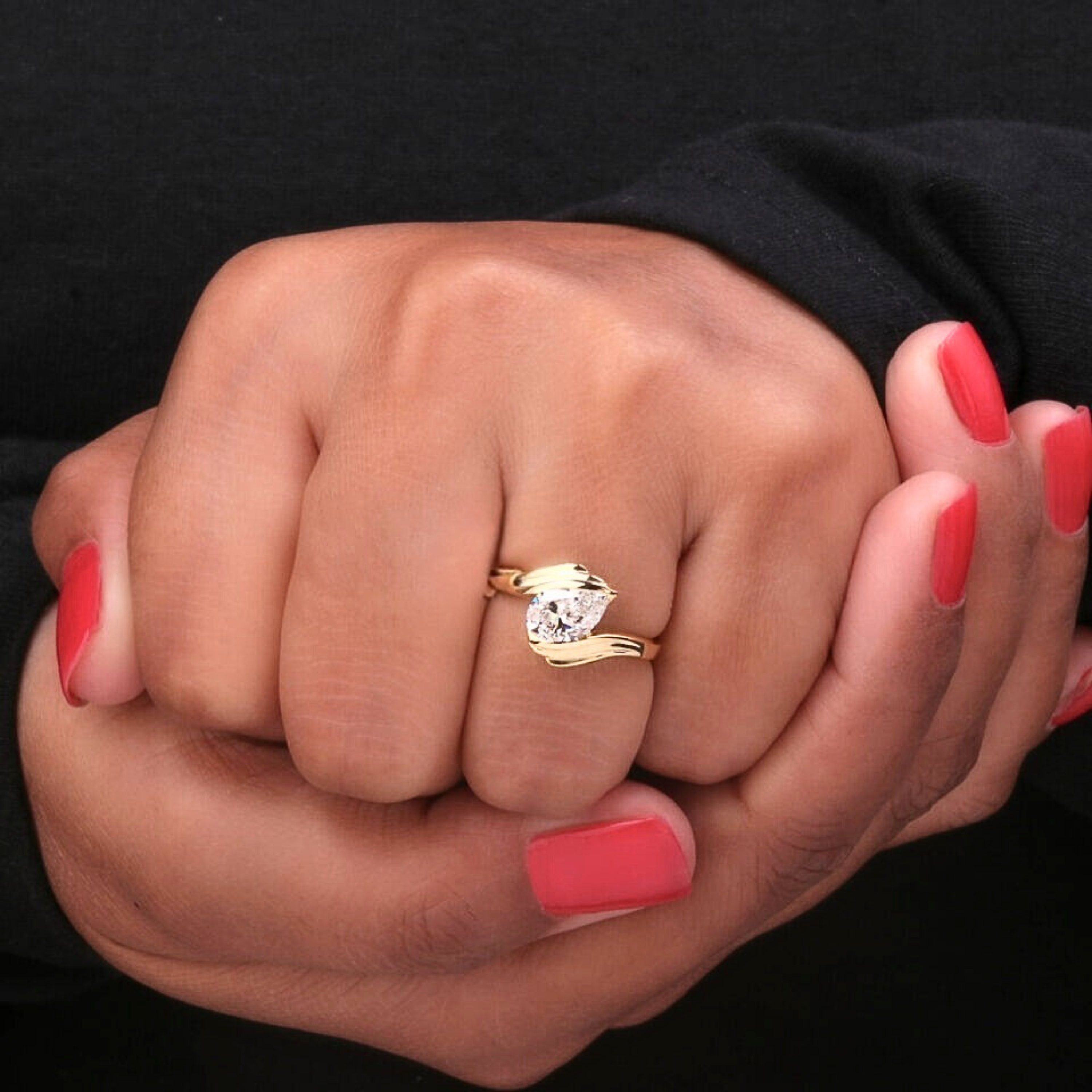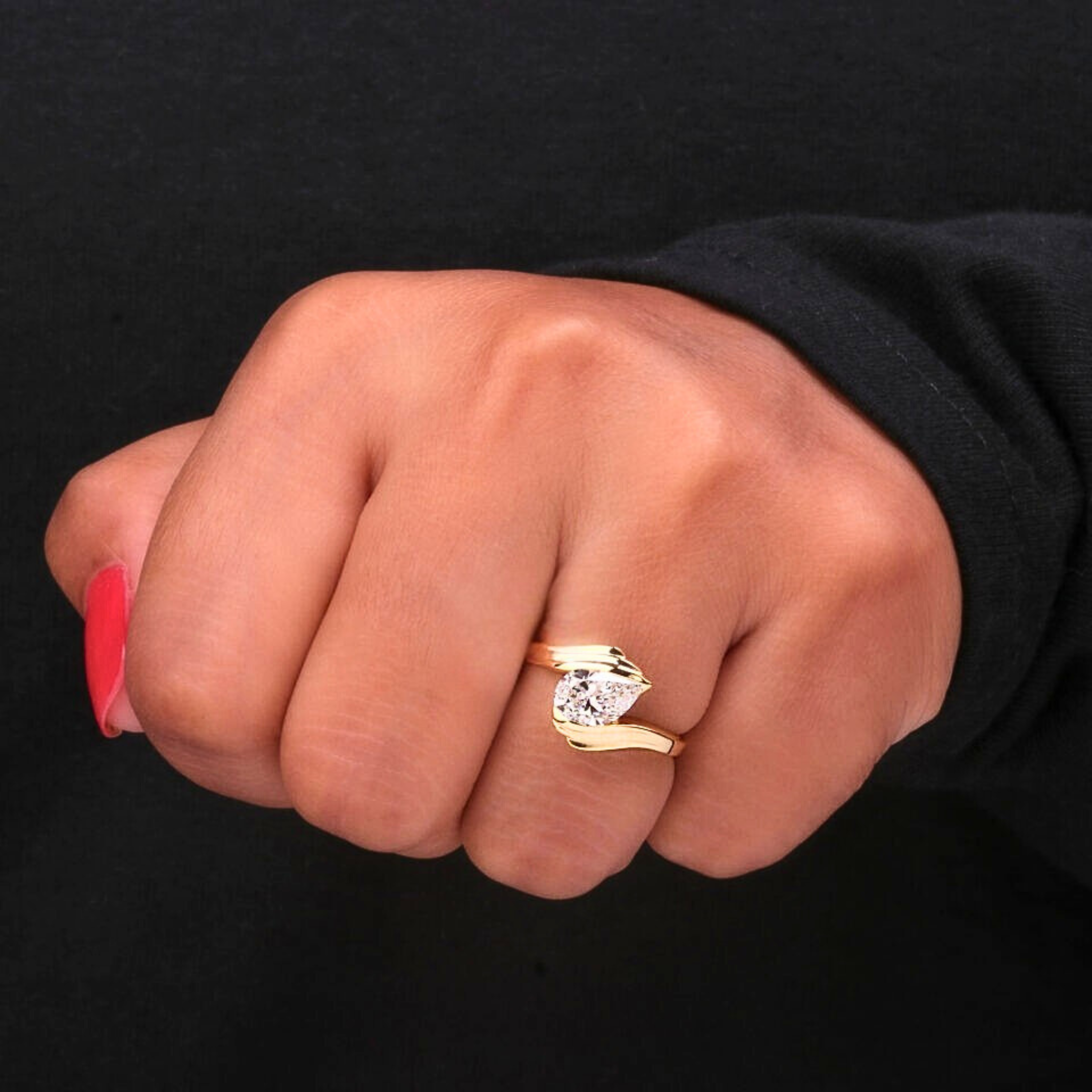 Celebrate modern elegance with this Pear Shaped Bypass Setting Lab Grown Diamond Engagement Ring, featuring a 1.00 carat pear-cut lab grown diamond in stunning EF color and VVS–VS clarity. The graceful bypass design cradles the diamond beautifully, symbolizing movement, harmony, and everlasting love.