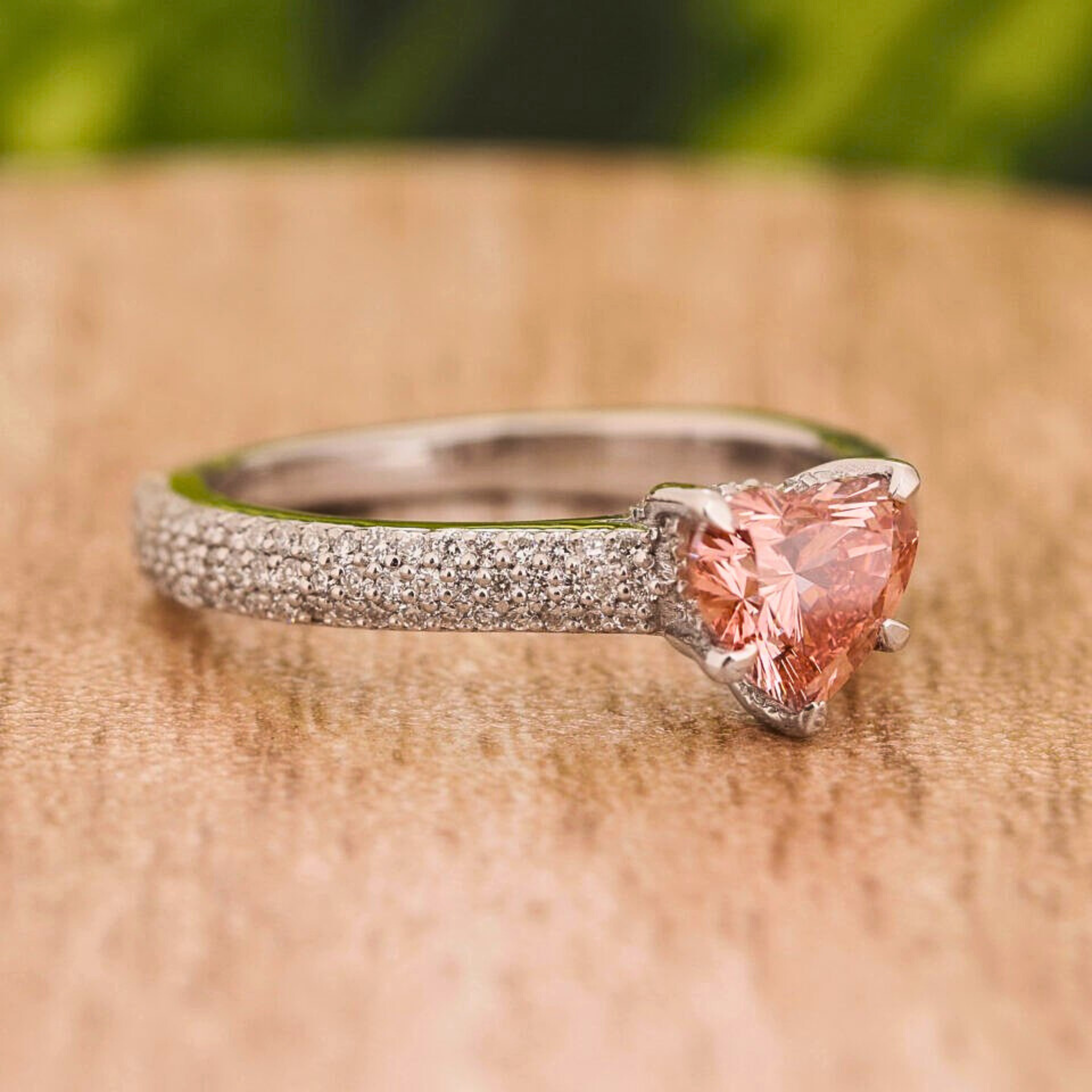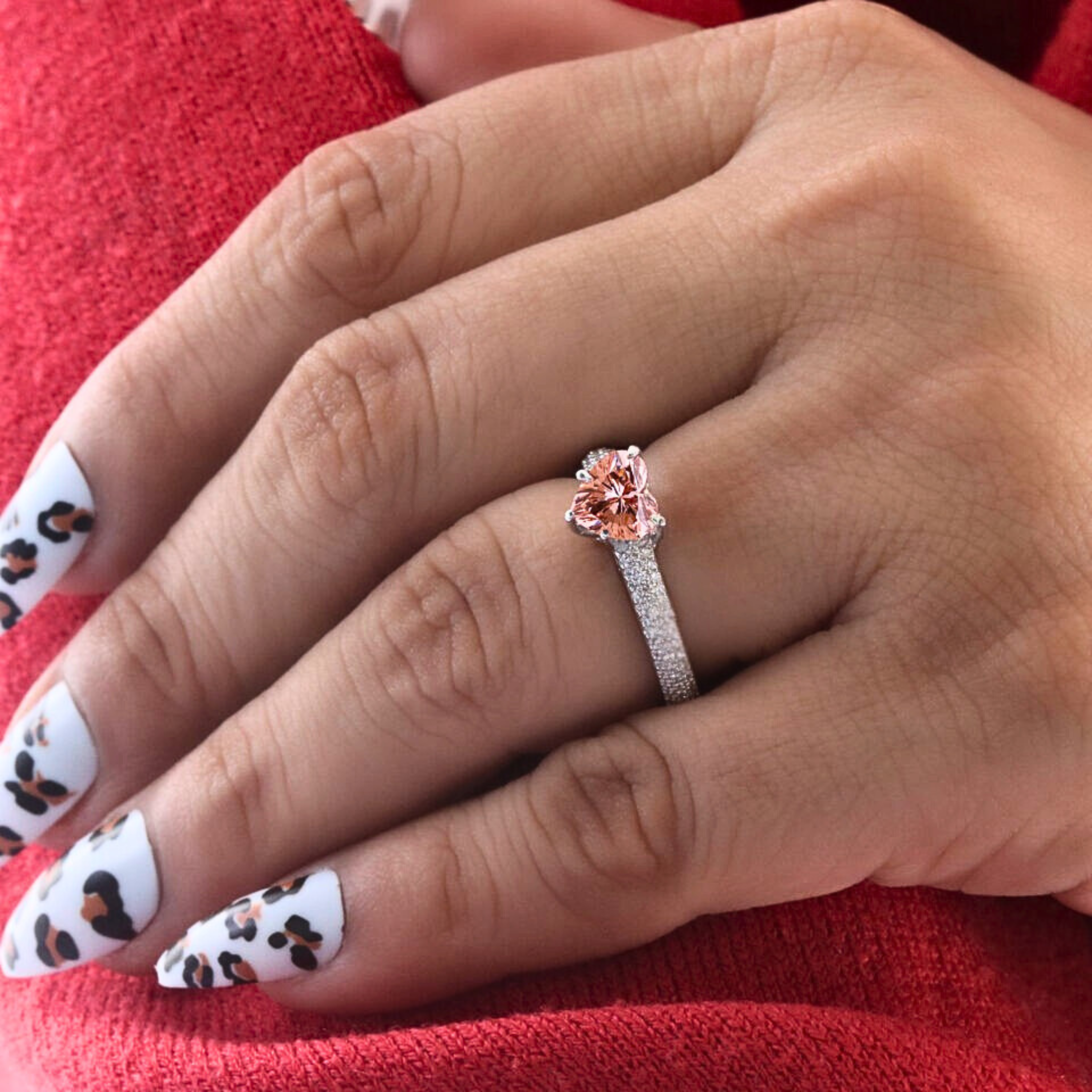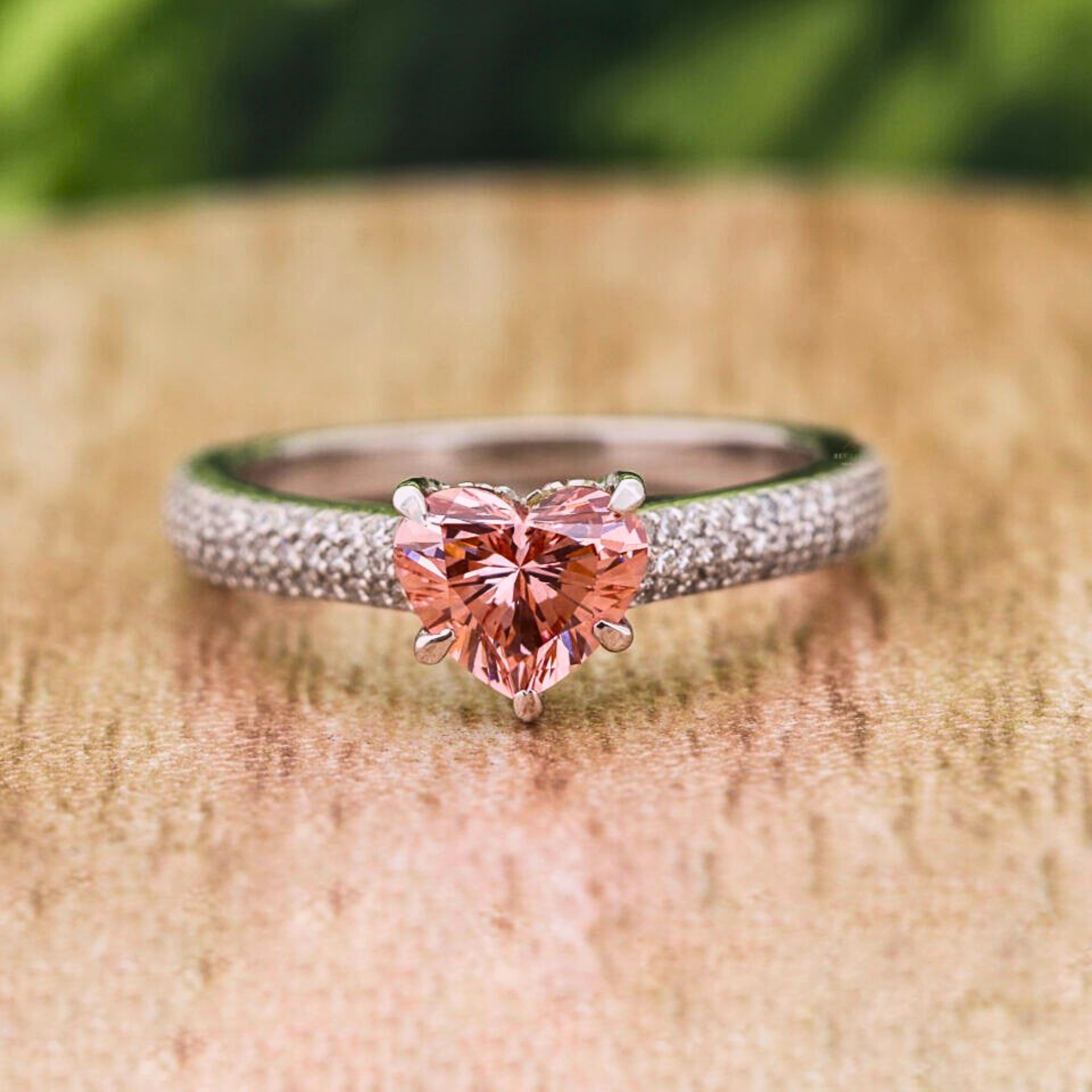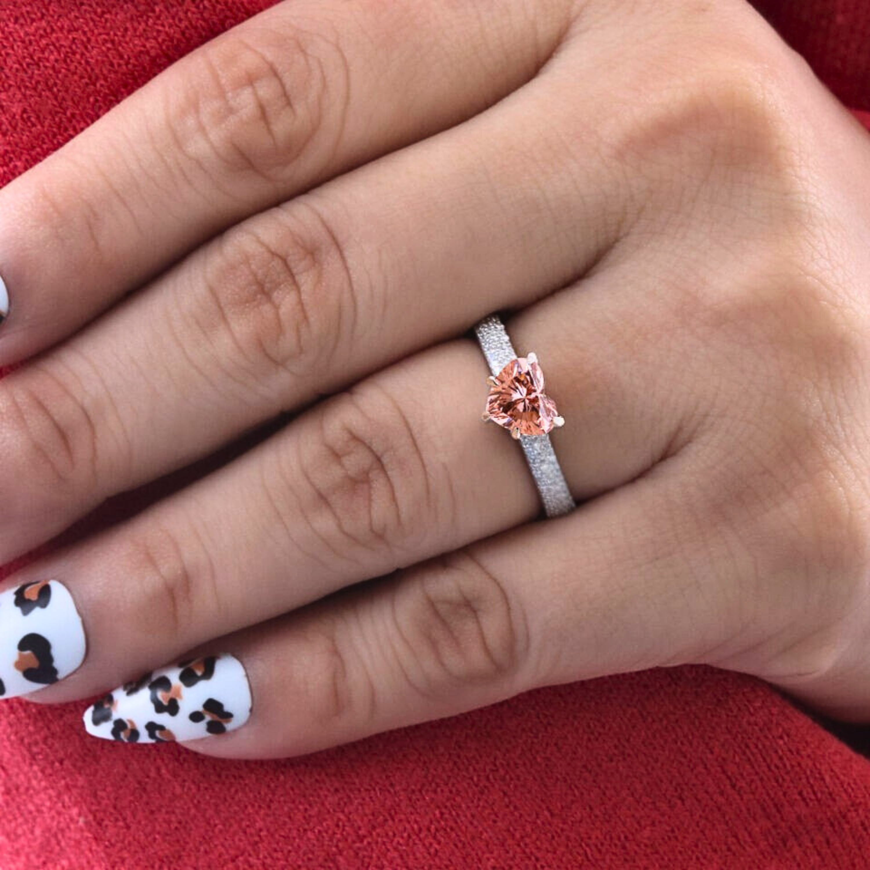 Celebrate love with this Heart Cut Vivid Pink Lab Grown Diamond Engagement Ring, designed to make a bold and romantic statement. Featuring a 1.50 CT heart-shaped pink diamond with VVS/VS clarity and excellent polish & symmetry, this ring radiates brilliance from every angle. The elegant pavé-set band with round lab grown diamonds adds extra sparkle, while the slim 1.80 mm band ensures a refined, modern look.